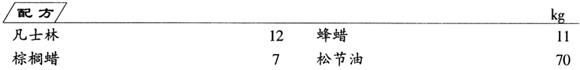 按配方要求将棕榈蜡、蜂蜡、凡士林混合并加热熔化,除去杂质。在搅拌下加入松节油,直到完全混合均匀为止,即得产品。