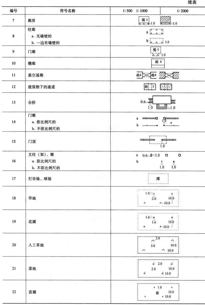 地面上的建筑物、旱田等地物,如能按测图比例尺并用规定的符号缩绘在图纸上,称为比例符号。