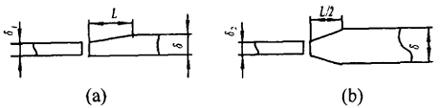 释义 | 坡口形式与焊接位置 坡口是根据设计或工艺需要,在工件的待焊部位加工成一定几何形状经装配后构成的沟槽。坡口形式及其尺寸一般随板厚而变化,同时还与焊接位置、热输入量、工件材质等有关。当对接接头板厚不同时,若板厚差δ-δ1不超过表1-2-58的规定时,则按板厚选定坡口形式和参数,而当板厚差超过表1-2-58的规定时,则应将板厚按图1-2-6所示要求加工成斜面。 表1-2-58 板厚不同时板厚与允许板厚差之间的关系 图1-2-6 不等厚板对接的加工要求[10] (a)单面斜边过渡L≥5(δ-δ1) (b)双面斜边过渡L≥2.5(δ-δ2) 各种形式的焊接接头在平焊位置焊接时,熔滴可借助重力落入熔池,熔池中的气体、熔渣容易浮出表面。因此平焊位置可以用较大电流焊接,生产率高,焊缝成形好,焊接质量易保证,劳动条件好,一般应尽量在平焊位置施焊。其他位置焊接对焊工操作技术要求高,劳动条件差,焊接质量不易保证。 |