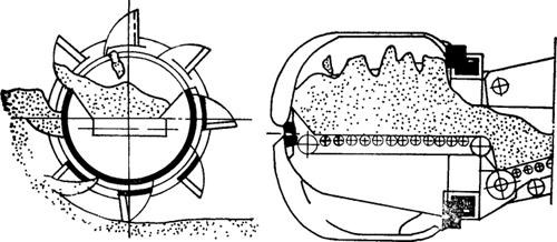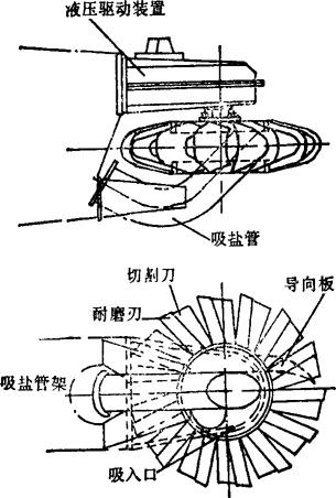 释义 | 型式 有开式、闭式、齿式、可逆式、冲水式、直轴型斗式、横轴型斗式、摆动式、斗轮式等,目前采盐机(船)所采用的球头圆柱齿式绞刀是闭式绞刀与齿式绞刀的变形。 1.开式绞刀〔图4-4-17(1)〕 结构比较简单,制造也较方便,其老式刀刃呈直线状,刀片呈平板状,切削效率较低。 图4-4-17 绞刀类型 1-开式 2-闭式 3-齿型 2.闭式绞刀〔图4-4-17(2)〕 刀片前端和轴毂相联,直径较大,以增加刀片间的空隙,防止堵塞。其外形如皇冠,因此又称皇冠式绞刀。其结构较开式绞刀复杂。由于前端有刀片,破碎能力较强,且内腔设有开式绞刀的轮辐条,绞刀的长度比直径小,有利于盐浆泵的吸入,提高采盐机(船)的采掘效率。 3.齿式绞刀〔图4-4-17(3)〕 是闭式、开式的变型,有的在刀片上装上牙齿,有的则把刀片刃口作成牙齿形状。齿式绞刀适应性强,可挖原生盐、再生盐和芒硝,其结构形式甚多,目前采盐用的切盐器即典型齿式绞刀。在“切齿”选型上,吉兰太盐场曾参照“采煤机”,改成可转式锥型齿,不但延长了“切齿”的钝化时间,而且更换方便,如图4-4-18。 图4-4-18 可转式锥形齿示意 1-刀头 2-刀座 4.斗轮式绞刀 为了避免绞刀自上而下切盐,斗轮式绞刀的切盐方式与链斗式采盐船(本章)的挖盐斗相似,特点是: (1)无论上下、左右摆动,均能连续、有效地挖掘,切盐方向始终是自下而上,如图4-7-19。 图4-4-19 横轴型斗轮式绞刀 (2)对各种盐矿石都可获得持续的高浓度; (3)有效采掘时间和采掘效率显着增加; (4)盐浆浓度可由斗轮的转速和采盐机(船)走行速度(横移速度)来控制,采掘的石盐均可由吸口全部吸走;采坑底部比较平整。 斗轮式绞刀在国外采硝船上已有多年的应用实践,且已标准化、系列化(图4-4-20)。如美国巴尔的摩市艾利克特国际机械公司(ELLCOTT MACHINE CORPORATIONINTERNATIONAL)到1988年已在53艘采盐船上安装B890S“巨龙”系列单、双斗轮式绞刀,采掘能力可达500t/h。 图4-4-20 IHC标准斗轮式绞刀 斗轮式绞刀与其他型式的绞刀相比,生产率可提高1~2倍。因为这种绞刀具有强制进料的作用,其盐浆浓度可达30~33%;而使用一般绞刀,盐浆浓度仅15%左右。这种绞刀适用于挖原生盐、再生盐和泥砂含量较大、结构坚韧的芒硝矿层,是采盐机(船)切盐器的发展方向。 5.立式绞刀 也叫底盘式绞刀,如图4-4-21,是把许多刀片装在圆形底板和环形顶板之间组成的。绞刀角度用绞接结构和液压缸进行调整,并固定在某一最佳施工位置上,吸口设在绞刀腔内,直接对着切削部分,当水平横移时,使吸口处于最有效位置上。 图4-4-21 立式绞刀 采掘时,绞刀的垂向切削分力相同。刀片远较皇冠式绞刀为多,切盐厚度和吸入阻力均较小。刀片本身又象格栅一样,可阻止障碍物进入,残留物比皇冠式绞刀一般可减少6~31%,效率提高5%。采坑底部非常平整。 6.冲水式绞刀 如图4-4-22,绞刀上安装冲水喷嘴,喷嘴的作用有三: 图4-4-22 冲水式绞刀 1-吸头 2-水室 3-冲水总管 4-斜孔 5-端部螺帽 6-水套 7-喷嘴 8-水管 (1)用水的冲击作用帮助绞刀松碎盐层,其射流方向向前,与绞刀轴线成60°; (2)冲碎绞刀内腔吸口处的块状石盐,其射流方向朝向吸口,以提高盐浆浓度; (3)盐层中的淤泥块不致粘附在刀片上,清除堵塞现象。 安装冲水式绞刀后,可提高采盐机(船)生产率,盐浆浓度可达到32%左右。 |