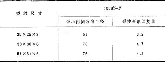 表5 T形型材的最小弯曲半径 单位:(毫米)