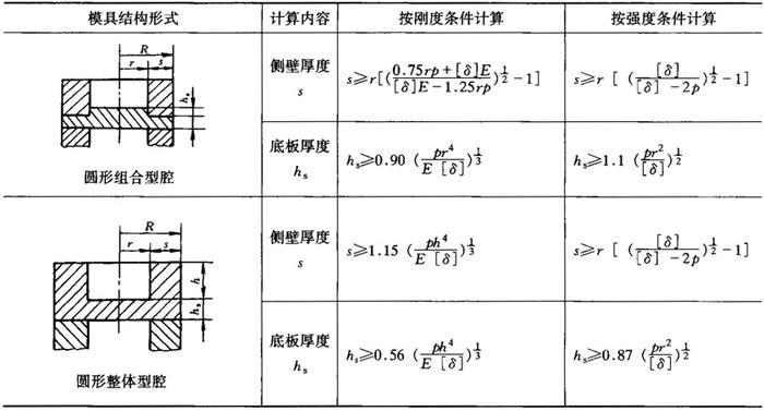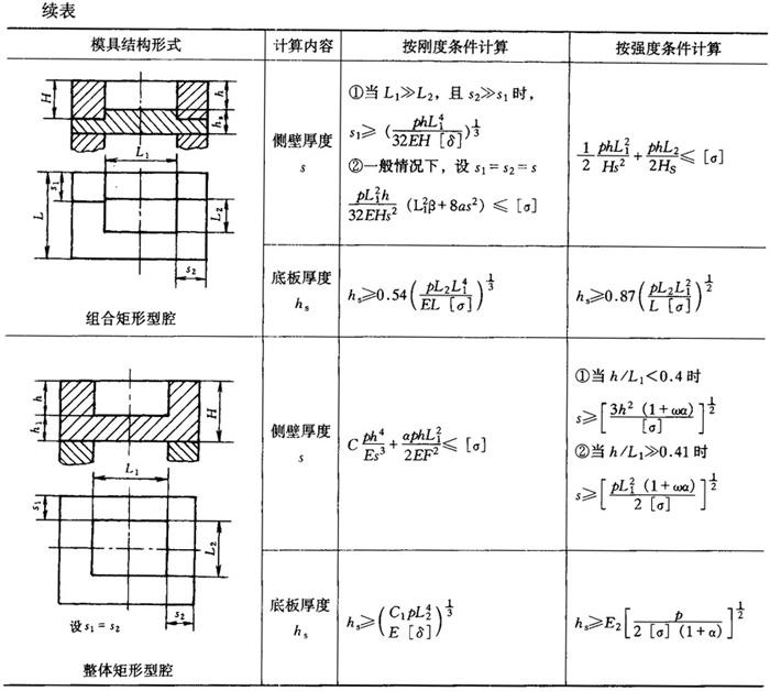 表4-8 模具型腔壁厚刚度和强度计算公式