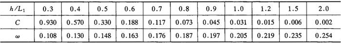C——与型腔深度对型腔侧壁长边边长之比h/L1有关的系数,见表4-11