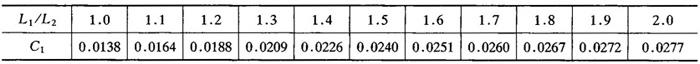 C1——由底板短边与长边边长之比L2/L1决定的系数,见表4-12所示
