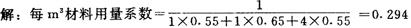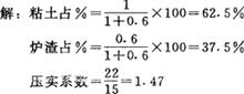 释义 | 垫层材料用量计算 铺设垫层材料有虚铺与压实的关系,其两者之比称为压实系数。其材料的配合比及压实系数的确定(见工程量计算式楼地面工程)。 (1)质量比计算法 材料净用量=混合物质量×压实系数×材料% 材料定额耗用量=材料净用量×(1+材料损耗率) 〔计算例〕 粘土炉渣配合比为1∶0.6。粘土容重为1400kg/m3,炉渣容重为800kg/m3。铺厚度为22厘米,压实厚度为15厘米。 每10m3材料用量: 粘土=1093×1.47×0.625×10=10042kg 10042/1400=7.17m3 炉渣=1093×1.47×0.375×10=6025kg 6025/800=7.53m3 说明:上列的材料用量未包括损耗。 (2)体积比计算法 〔计算实例〕 求1:3石灰炉渣垫层每米3材料用量。已知每米3粉化石灰需生石灰用量为501.5千克,虚铺厚度为16厘米,压实厚度为11厘米,生石灰损耗率为1%,炉渣损耗率为1.5%。1∶3相当2.5∶7.5。 (3)水泥石灰炉渣配合比材料用量计算方法 采用体积比和压实系数计算。 〔计算例〕 1∶1∶8水泥、石灰、炉渣,已知虚铺厚度16厘米,压实厚度11厘米,压实系数1.455。 (4)石灰、砂、碎砖三合土配合比材料用量计算方法 〔计算例〕 1∶1∶4石灰、砂、碎砖三合土垫层,每m3材料用量。 已知:石灰孔隙率0.45,实体积=1-0.45=0.55 砂孔隙率0.35,实体积=1-0.35=0.65 碎砖孔隙率0.45,实体积=1-0.45=0.55 石灰用量=1×0.294×501.5=147.4kg 砂用量=1×0.294=0.294m° 碎砖用量=4×0.294=1.176m3 |