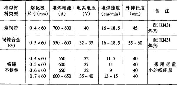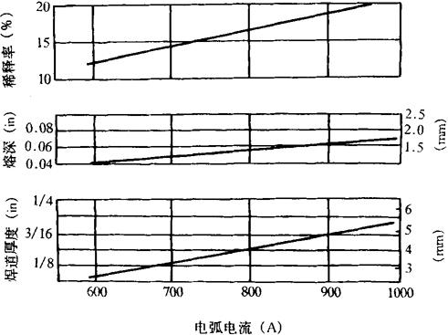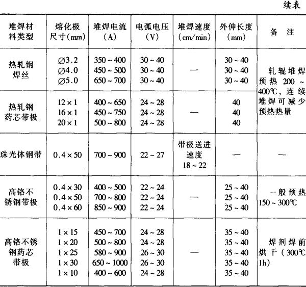 释义 | 埋弧堆焊工艺 1.选择焊丝与焊剂 根据堆焊层的要求,选择合适的焊丝和焊剂。焊丝是堆焊层合金元素的主要来源,它的成分在很大程度上决定了堆焊层的成分和性能。为获得合乎要求的堆焊层,必须选择能基本满足堆焊层性能要求的焊丝。可以选用实心焊丝,也可以选用药芯焊丝。焊剂在堆焊过程中有渗合金的作用,通过熔渣过渡可以改变堆焊层的成分。因此-种焊丝配合不同成分的焊剂,可以得到不同类型的堆焊层。堆焊在大多数情况下选用烧结焊剂,它抗气孔、抗开裂能力强,脱渣性好,便于渗合金。堆焊不锈钢时,往往在焊剂中加铬,通过熔渣向堆焊金属过渡,以补偿在焊接过程中,因氧化和稀释造成的铬损失。 2.焊前准备 工件和焊丝的清理。焊剂烘干,烘干规范为400℃烘2~3h。 3.工艺参数的选择 埋弧堆焊的工艺参数有:堆焊电流、电弧电压、堆焊速度以及极性等。合理的选择参数与恰当的配合,可获得最佳的堆焊效果。堆焊电流和堆焊速度对熔敷速度、稀释率、熔深、熔宽、堆焊层厚度的影响趋势见图9-1和图9-2。为提高熔敷速度、生产率、改善热循环、降低稀释率,可采用带极埋弧堆焊或多丝埋弧堆焊。埋弧堆焊机可用通用埋弧焊机改装,也有专用的埋弧堆焊机,专用堆焊机有堆焊车轮轮缘的Mu-2×300堆焊机,堆焊高合金钢和不锈钢的带极堆焊机Mul-1000-1。 图9-1 堆焊电流的影响 图9-2 堆焊速度的影响 4.埋弧堆焊规范 表9-36 不同材质、不同尺寸埋弧堆焊规范 |