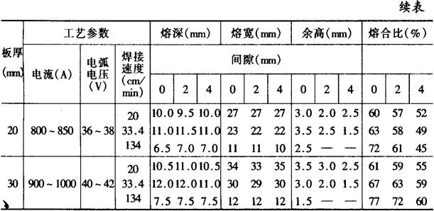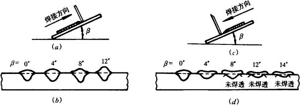 释义 | 埋弧焊工艺参数 影响埋弧焊焊缝成形和质量的主要因素有:线能量、接头结构形式、尺寸、施工工艺及焊接材料性能。决定线能量大小的参数有焊接电流、电弧电压、焊接速度。 1.焊接电流对焊缝形状尺寸的影响 熔深H、熔宽B、余高a随焊接电流I的增加而增加,其增加的趋势如图4-4b所示。熔深H几乎与焊接电流成正比增加,即H=KmI,比例系数Km随焊接条件不同而变化,见表4-3。图4-4a是随焊接电流增加,焊缝横断面面积增加和形状变化的情况。 图4-4 焊接电流对焊缝形状的影响 B-熔宽 H-熔深 a-余高 表4-3 Km在不同条件下的取值范围 在其他条件不变的情况下,改变焊接电流密度(即调换焊丝直径),将明显影响焊缝熔深H,熔宽B及其比值B/H——焊缝形状系数。表4-4是在电弧电压为30~32V,焊接速度为33cm/min时,不同焊丝直径和电流的焊缝尺寸数值。可见电流密度增加,焊缝形状系数B/H相应减小。若要保持B/H不变,在增加电流密度的同时,需增加电弧电压。保持合理焊缝成形常用电流取值范围见表4-5。 表4-4 电流密度对焊缝形状尺寸的影响 表4-5 不同焊丝直径时电流取值范围 2.电弧电压对焊缝形状的影响 电弧电压增加,焊缝熔宽B增加,而熔深H和余高a略有减小。变化趋势如图4-5所示。应当指出电弧电压的调节范围是不大的,它要随焊接电流的调节相应地调节。即当焊接电流增加,适当增加电弧电压,才能保证焊缝形状系数B/H在良好的范围内。若采用直流电源时,反极性比正极性焊缝熔宽B要增大一些。另外电弧电压增加,焊剂的熔化速度和消耗量几乎成比例增加。 图4-5 电弧电压对焊缝成形的影响 H-熔深 B-熔宽 α-余高 3.焊接速度对焊缝形状的影响 当焊接速度v大于76cm/min时,随着焊接速度的增加,由于线能量的减小,焊缝熔深和熔宽均有明显下降。当焊速小于76cm/min时,焊速增加,焊缝熔深、熔宽变化不大。焊速影响熔深、熔宽的情况见图4-6。 图4-6 焊速对成形的影响 H-熔深 B-熔宽 4.焊丝倾斜角度对焊缝成型的影响 埋弧焊焊丝在运动的平面内与工件垂直面的夹角称为焊丝倾斜角α。前倾角如图4-7a所示,后倾角如图4-7b所示,图4-7c是焊丝后倾时α从0°增加到60°焊缝形状的变化情况。前倾的情况很少应用。 图4-7 焊丝倾角对焊缝成形的影响 (a)前倾 (b)后倾 (c)焊丝后倾角度的影响 5.工件倾斜角度对焊缝成形的影响 工件与水平面的夹角β称为工件倾斜角,由于向上焊或向下焊的方式不同,β角对焊缝成形影响完全不同,如图4-8所示。 图4-8 工件倾角对焊缝成形的影响 (a)上坡焊 (b)上坡焊工件斜度的影响 (c)下坡焊 (d)下坡焊工件斜度的影响β-工件斜度 6.坡口对焊缝成型的影响 增加坡口的深度和宽度,焊缝熔深增加,熔宽减小,余高及熔合比显着减小,如图4-9所示。可用此法调节余高和熔合比。 图4-9 坡口形状对焊缝成形的影响 7.焊缝间隙对焊缝金属熔合比及焊缝尺寸的影响 板厚在一定的范围内,调节焊缝间隙可以有效地调节熔合比(母材熔化量/填充金属熔化量)。如熔深不超过被焊板厚70%时,间隙增加,熔合比显着下降,而当单面焊道完全熔透板厚时,调节间隙、熔合比没有明显变化。在一些典型规范条件下,测试间隙变化对焊缝成形的影响数据见表4-6。 表4-6 焊缝间隙对焊缝成形的影响(焊丝 注:当熔深不超过被焊板厚的70%时,可用调整间隙的方法控制熔合比。当单面焊道完全熔透板厚时,改变间隙对熔合比几乎不起作用。 8.焊丝直径对焊缝成形和尺寸的影响 在其他条件相同的情况下,焊丝直径减小,熔深H增加,熔宽B减小,焊缝形状系数B/H减小。随着焊丝直径不断减小,电流密度增大到100A/mm2时,由于电弧受过多的液体金属阻碍,熔深不再增加,此时随着焊丝熔化量的增加,焊缝余高显着增加,焊缝成形变坏。为保持良好的焊缝成形,应适当提高电弧电压。 9.熔剂层厚度对焊缝成形的影响 熔剂层太薄会出现电弧外露,失去保护作用,易形成气孔、裂纹等缺陷,而且熔深变浅。熔剂层太厚会出现熔透过深、焊道变窄、余高加大等现象。合理的厚度在20~30mm之间。 |