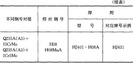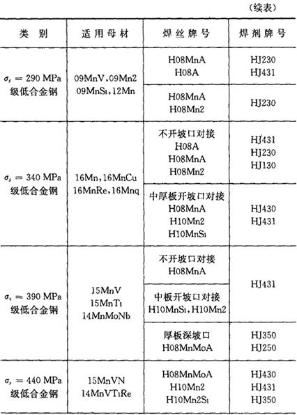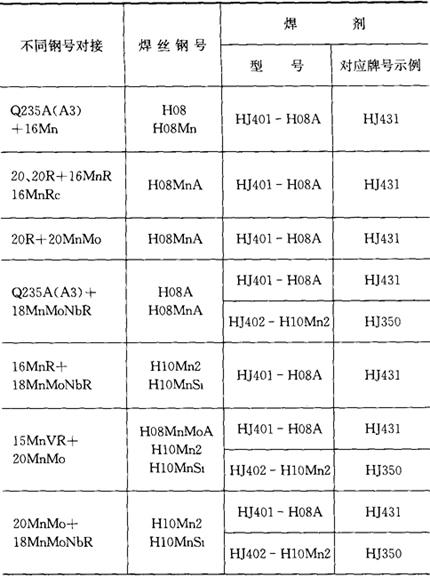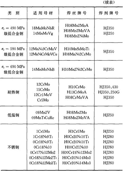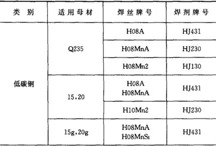 表3.2-2 不同钢号埋弧焊焊丝和焊剂的选配