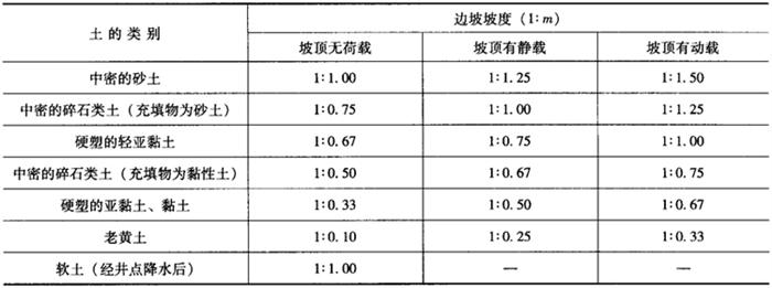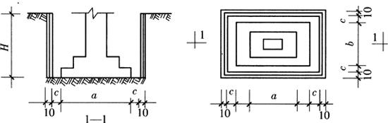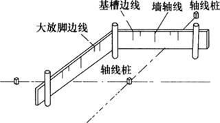 释义 | 基坑的定位放线 基坑(槽)的定位放线是一项非常重要的技术工作,不仅关系到基坑的位置是否准确,而且还关系到土方开挖的工程量大小。因此,必须认真搞好基坑(槽)的定位放线工作。 (一)龙门板的设置 在建筑物各角桩位置定好后,应把角桩之间的轴线位置,引测至基槽以外的龙门板上,如图1-32所示,以便在基础开挖好以后,把龙门板上的各轴线投到基槽的底部或基础面上,以确保建筑物的位置准确。 图1-32 龙门板的设置 在设置龙门板时,应按照以下步骤和要求进行: (1)在建筑物四角与建筑物内纵、横墙两端基槽开挖边线以外约1~1.5m处钉设龙门桩,具体位置应根据土质情况和基槽开挖深度而确定,龙门桩要固定竖直、牢固,木桩的侧面要与基槽平行。 (2)根据建筑施工场地的水准点,在每个龙门桩上测设±0.00(或+0.50~1.0m)标高线,并沿此标高线钉龙门板。 (3)根据轴线桩,用经纬仪将墙、柱的轴线投到龙门板顶面上,钉上小铁钉加以标明,并在轴线的延长线上钉控制桩,如图1-33所示。 图1-33 龙门板与控制桩 (4)用钢尺沿龙门板顶面检查轴线钉之间的距离,其相对误差不应超过1/2000,经检查合格后,将墙和基槽宽度标在龙门板上,最后根据基槽上口宽度拉线,并用石灰粉撒出基槽的开挖线。 (二)基坑(槽)的放线 依据龙门板确定的基础的底面尺寸,并依据埋置深度、土质好坏、地下水位等情况,考虑在施工过程中是否留工作面、放坡、设置排水设施和支撑等,从而定出挖土的边线,进行基坑(槽)的放线。在基坑(槽)的实际施工中,挖土边线的确定有以下几种情况: 1.不放坡不设支撑 当土质比较均匀且无地下水时,在表1-17中规定范围内的各类土和挖土深度,其挖土边坡可做成直立壁不加支撑,基础底面的尺寸就是放灰线的尺寸。但是,在实际开挖中很难掌握直立壁绝对垂直,一般情况下,在挖土深度大于2.0m时,掌握放灰线尺寸稍大于基础底面尺寸。 表1-17 直立壁不加支撑的土方开挖深度表 2.不放坡加支撑和留工作面 当基槽的开挖深度超过表1-17中的规定,且场地窄小不能放坡时,应做成直立壁加支撑的形式,如图1-34所示。在浇筑基础混凝土时,还应考虑到支外模需要一定的工作面。因此,这种形式的基槽挖土放线尺寸,要留出工作面尺寸和设置支撑所需要的尺寸。根据施工工程的具体情况,基底外每边应留出30~60cm的工作面宽度,支撑所需要的尺寸,每边加10cm。 图1-34 直立壁加支撑 3.放坡不加支撑 当基槽的开挖深度超过表1-17中的规定,且深度在5.0m以内,土质均匀,无地下水时,可考虑放坡不加支撑。具体放坡的宽度,应根据施工经验而确定,也可参照表1-18中的最陡坡度进行计算。基槽挖土的放线尺寸,除考虑需要增加混凝土基础所需工作面外,还应增加因放坡所需上口放坡宽度。 表1-18 深度在5m内的基坑(槽)、管沟边坡的最陡坡度(不加支撑) 注:1.静载指堆土或其他材料等,动载指机械挖土或汽车运输作业等。静载或动载距挖方边缘的距离,应符合规范中的有关规定。 2.当施工单位有成熟的施工经验时,可以不受本表的限制。 |