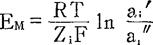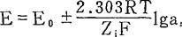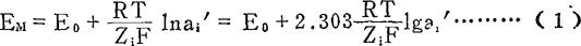 释义 | 基本原理 离子选择性电极,根据1975年国际纯粹化学和应用化学会(简写为IUPAC)推荐是指一类通过电极电位的可逆变化来反应某种离子活度变化的电化学传感器,它能把溶液中某种离子的活度转变为电讯号(电位),而且电极的电位与溶液中某种离子的活度对数呈线性关系,从而实现了对某种离子的定量测试。人们把电极的电位随着离子活度的变化而变化的特征称为响应,若这种响应变化服从于能斯特(Nernst)方程,则称为能斯特响应,电极的能斯特响应是选择性电极的基本特性。 各种类型的离子选择性电极的结构虽各有特点,但它们都具有一个称为离子选择性膜的敏感元件,离子选择性电极的利用决定于膜电位的测定,假如我们把离子选择性电极模拟成如下一种形式(图2-26)。 图2-26 膜电位 中间为离子选择性电极膜,薄膜右边的溶液(1)中含有离子i和j,其活度分别为 假定薄膜对离子i有选择性响应,离子i可以透过选择性膜,由活度高的溶液(2)向活度低的溶液(1)自由运动。而离子j(或其他任何离子)被阻挡不能透过选择性薄膜。这时在这两种溶液中的选择性薄膜两边将产生电荷的分离,形成一个双电层结构,从而产生一定的电位差,这就是选择性膜电位。因此在这个体系中,膜电位就是一个浓差电位,这就可能象在浓差电池中那样,使膜电位EM与离子的活度联系起来。 如果有一边的离子活度ai〃保持恒定,则此方程式可改变如下的形式,因此膜电位就成为离子i活度的对数函数了。 式中:2.303——自然对数转换为常用对数的系数; R——普通气体常数8.314焦耳/克分子·度; T——绝对温度; F——法拉第常数,96500C/mol; Zi——i离子电荷数(价数),(也有用n表示); ai′——待测离子i的活度; ai〃——已知溶液离子i的活度。 但是,膜电位是不能直接进行测量的,通常引入一支不随溶液中待测离子活度变化而改变其本身电位的参比电极,它和离子选择性电极组成完整的电化学电池,从测定电池的电动势中推算出膜电位来。电池的电动势是以下几个电位的代数和。 E电池=(E参1-E参2)+E膜+Ej……………………(2) 因E参1-E参2=E0(常数);Ej为液接电位,一般忽略不计。所以上式可简化为: 多数离子选择性电极在工作范围内符合Nernst公式,一个性能良好的离子选择性电极电池,当溶液中离子活度变化时,只有膜外表面电位是变数,其余均可归入Nernst公式常数项E0中去。因此离子选择性电极和参比电极的电位差可用Nernst公式表示(符号“+”对于阳离子,“-”对于阴离子): 必须指出,离子选择性电极测得的是离子活度而不是浓度。离子浓度与活度的关系如下: a——活度;f——活度系数;C——浓度。 在低浓度(10-2以下)时,其活度系数接近1,可以把活度a视为浓度C,所以可把Nernst公式写成: Ci——待测离子i的浓度。 |