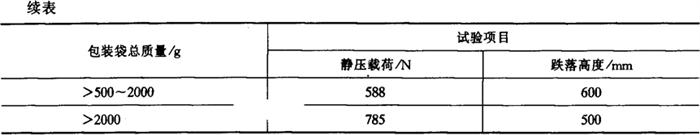 释义 | 基本参数和技术要求 1 基本参数 GB9177-88真空、真空充气包装机通用技术条件规定了腔式包装机的基本参数,其他类型的机型可参照此标准。 标准规定了基本参数应包括如下项目: 1.1 真空室的初始压强(最低绝对压强)(kPa)。 1.2 真空室尺寸(长×宽×高)(mm)。 1.3 热封条有效尺寸(长×宽)(mm)。 1.4 热封条总数单室热封条数×真空室数。 1.5 包装能力 注:分式的商值需大于1,且去尾取整。 1.6 单位能耗抽气量 1.7 功率 泵电机功率(kW) 热封功率(kW) 其他功率(kW) 1.8 真空泵抽气速率(L/s) 1.9 整机外形尺寸(长×宽×高)(mm3) 1.10 整机重量(kg) 2 技术条件 一般机械电器的技术条件不在此述说,下面即为与真空(充气)包装机有关的技术条件。 2.1 在外界标准大气压下,真空室的初始压强不得大于1.33kPa,经1min泄漏其压强增量不得大于表2-5-1所示数值。 表2-5-1 2.2 多工位包装热封工位的室位精度为±2mm。 2.3 包装袋热封口质量应符合下列要求。 2.4 包装袋热封口强度规定为:15mm长的封口所能承受的拉力不得小于表2-5-2所示数值。 表2-5-2 注:试验条件:温度为(23±2)℃,相对湿度为50%~7096,拉力试验机夹钳间的相对移动速度为(300±20)mm/min。 2.5 包装袋经静压(保压1min)和跌落试验,封口应完好无损,试验项目如表2-5-3所示。 表2-5-3 注:下列情况除外: (1)固体内装物在规定的静压载荷作用下发生破损; (2)内装物形状不规则而能扎破袋子; (3)内装物作跌落试验时呈现缓慢下降; (4)包装袋的热封口应平整,不许有皱折及灼化现象。 2.6 常用包装物品充气成分和常用复合薄膜如表2-5-4和表2-5-5所示。 表2-5-4 常用包装物品充气成分 表2-5-5 常用复合薄膜的构成与特性、用途 注:(1)特性符号说明:●优,〇良,×不行。 (2)材质代号说明:PT——玻璃纸,PE——聚乙烯,OPP——双向拉伸聚丙烯,CPP——无拉伸聚丙烯,PVDC——聚偏(二)氯乙烯,KPT——玻璃纸上涂有PVDC,PET——聚酯,NY——尼龙,PVA——聚乙烯醇,PC——聚碳酸酯,AL——铝箔。 |