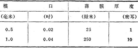 基本薄膜厚度的模口范围