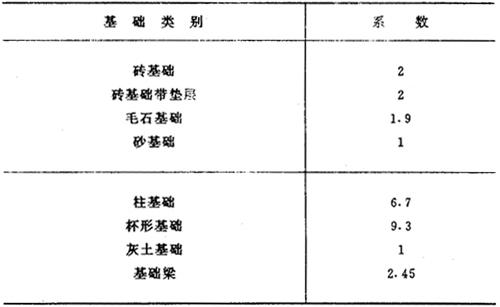 注:已知各类基础砌体工程量乘表中系数即得挖土方量。