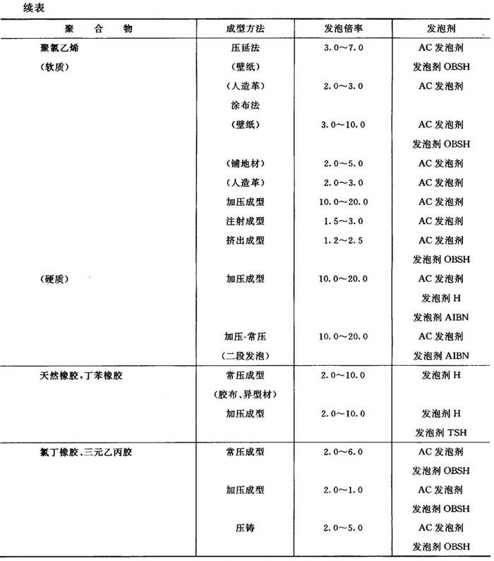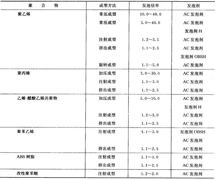 塑料和橡胶泡沫体的成型方法和发泡剂的选择