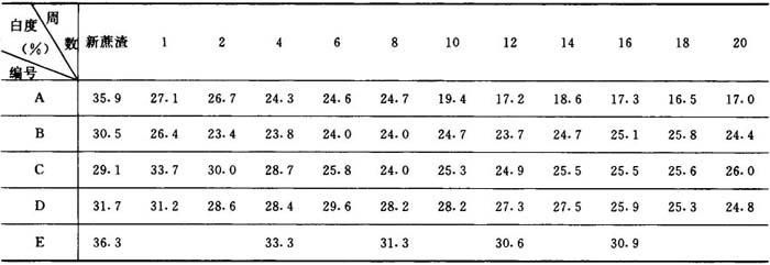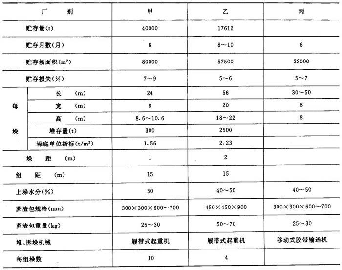 释义 | 备料 备料是指蒸煮前对原料的初步处理和加工。对蔗渣原料来说,主要包括贮存和除髓。从生产要求看,除髓是关键。 1.对蔗渣原料的质量要求 造纸用蔗渣质量技术指标应符合GB5407-87中的规定,见表5-5-1。 表5-5-1 蔗渣质量技术指示 送往制浆的蔗渣应: ①贮存一定时间; ②尽量把髓除干净; ③蔗渣外观应为黄白色或浅黄色,不应发红变酸,霉烂变质; ④蔗渣的形态最好是有一定长度的片状或丝状,粉状的比例越小越好。 2.甘蔗渣的贮存 (1)甘蔗渣贮存的意义 甘蔗制糖属于季节性生产,每个榨季只能持续几个月(100~150天)。为了维持制浆造纸厂正常的连续生产,必须贮备足够数量的蔗渣原料。 糖厂新榨出的蔗渣,含水分在50%左右,并含有2~6%的可溶性固形物(大部分为糖分)。国内外的经验表明,新鲜蔗渣直接用于制浆造纸,不但耗碱量较高,而且制得的纸浆质量也较差。故新榨出的蔗渣一般都不马上用来制浆,而是贮存一定时间,以改进原料本身的质量,给纸浆生产创造有利条件。 (2)甘蔗渣在贮存过程中的变化 由于新蔗渣中水分含量高,又有一定的残留糖分等物质,为微生物的生长提供了良好的条件。微生物的迅速繁殖即产生发酵,放出大量的热量,导致蔗渣温度升高,水分挥发,残糖迅速分解。 ①蔗渣贮存过程中水分的变化。蔗渣干法堆存过程中,水分逐渐下降。一般情况下,新鲜蔗渣在30天内水分明显下降,而后日趋缓慢。蔗渣堆存过程中水分的变化受外界影响较大,如气温、湿度、堆存结构及排水设施等。蔗渣堆内各部分的水分也不尽相同。一般在通风道附近的蔗渣水分含量较低,堆底水分含量较高。表5-5-2是蔗渣贮存过程中水分的变化。 表5-5-2 蔗渣贮存过程中水分的变化* 注*打包贮存,堆宽8~10m。 ②蔗渣贮存过程中温度的变化。蔗渣发酵引起蔗渣堆温度上升,当发酵到一定程度(糖分完全分解),温度则慢慢下降。堆内温度的变化也与蔗渣的含水量、蔗包大小、通风条件等有关。通风不好,热量不能及时散发掉,就会造成蔗渣纤维因长时间受热而变质,甚至会烧焦变黑。表5-5-3是广东某厂测定的蔗渣堆内温度的变化。 表5-5-3 蔗渣贮存期间温度的变化 ③蔗渣贮存过程中糖分的变化。半干打包贮存的蔗渣,4天后糖分减少了90%,存放17~20天后,糖分完全消失。广东某厂测定,半干打包的蔗渣中的糖分在贮存15天后即完全分解(如表5-5-4)。显然,蔗渣水分含量对糖分残留时间有直接的影响。经初步干燥至含水分20%左右的蔗渣打包贮存,其糖分保留了50天。 表5-5-4 蔗渣残糖在贮存过程的变化 ④蔗渣贮存过程中白度的变化。表5-5-5是蔗渣贮存过程中的白度的变化。由表中看出,蔗渣贮存过程中白度都有所降低。采用湿法贮存或在蔗渣堆中喷淋少量的Mg(HSO3)2药液,能够保护蔗渣的白度,减少白度的下降。 表5-5-5 蔗渣贮存过程中白度的变化 注:①试样A为糖厂刚榨出未除髓,蔗渣干法散堆贮存的结果。 ②试样B为糖厂刚榨出即进行一次半湿法机械除髓的蔗渣,干法散堆贮存的结果。 ③试样C为糖厂刚榨出即进行一次半湿法机械除髓,并加Mg(HSO3)2药液(0.53%SO2计)的蔗渣干法散堆贮存的结果。 ④试样D为糖厂刚榨出即进行一次半湿法机械除髓,并在水力碎浆机中进行一次湿法除髓(湿法除髓率为54%)后的蔗渣湿法散堆贮存的结果。 ⑤试样E为糖厂刚榨出即进行一次半湿法机械除髓的蔗渣置水池中浸水贮存(每周换水一次)的结果。 ⑤蔗渣贮存过程中的自然损失。蔗渣在堆存过程中,随着温度的上升,所含的糖分和果胶质、淀粉和聚戊糖发生分解,导致蔗渣重量的减轻。蔗渣在运输和堆存保管过程中的少部分散落损失,也是产生自然损失的原因。表5-5-6是蔗渣堆存期间的自然损失情况。 表5-5-6 蔗渣堆存期间的自然损失率 (3)贮存方法 ①干法贮存。蔗渣干法贮存,有散堆贮存和打包贮存之分。散堆贮存,由于蔗渣的视密度低,蔗渣堆的高度不宜太高,单位贮场面积贮量少,且堆内的通风不良,散热不好,使堆内温度过高,降低蔗渣质量,增加自然损失率。 打包贮存是国内普遍采用的蔗渣保管法。蔗渣打包后,可以大大提高蔗渣的视密度,提高单位贮场面积贮量,有利于实现蔗渣运输和贮存机械化,且由于通风较好,热量较易散发,蔗渣质量比干法散堆的好,损失率也低些。 蔗渣的堆垛,一般都采用长方锥体形即锥底为长方形,四边从底往上逐渐收缩,呈金字塔形(见图5-2-3)。堆垛时要充分注意通风,每包蔗渣之间应留5~8cm的间隔。在向上叠堆时,常常先纵向堆3层(或2层),再横向堆1层。在横向堆置时,每5包或4包留一宽25cm的通风道。堆置要整齐,逐步收缩成尖顶,盖垛要严密,防止雨水渗入。图5-2-6是某厂蔗渣堆存布置图。 不同堆形单位面积堆存量见表5-5-7。 表5-5-7 不同堆形单位面积堆存量 ②散装湿法贮存。典型的湿法贮存方法是Ritter法。其基本原理是:在蔗渣中加入生物液(如乳酸菌液),蔗渣在生物液作用下松散堆存,乳酸菌的存在能抑制其他菌的生长,防止蔗渣纤维的变质。采用湿法贮存时,蔗渣先送到一个混合室内与生物液和水混合,以2.5~5%的浓度用泵经管道或流槽送到能滤水的堆场中。湿堆高度达22~25m。生物液的pH值控制在3~4之间。从蔗渣堆流出的回收液pH值一般为5。这种方法的贮存损失为3~4%。图5-5-14为Ritter法湿法贮存流程示意图。 图5-5-14 Ritter法湿法贮存流程示意图 美国Peadco公司将经洗涤和二次除