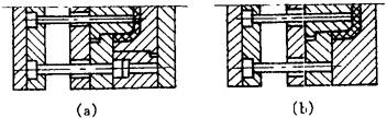 释义 | 复位机构 合模时为了使脱模机构准确的恢复到原始位置,模具中需设置复位装置,常用的复位形式有三种。 (1)回程杆复位 如图4-149所示。回程杆的一端固定在推杆固定板上,另一端与分型面平齐,图4-149(a)为回程杆作用面处带有淬火镶件,图4-149(b)在该处需直接淬火。 图4-149 回程杆回程 (2)推杆兼回程杆回程 在塑件几何形状和模具结构允许的情况下,可将推杆兼作回程杆使用,如图4-31所示。 (3)弹簧回程 利用弹簧的弹力使脱模机构复位,如图4-150所示。 图4-150 弹簧回程机构 |