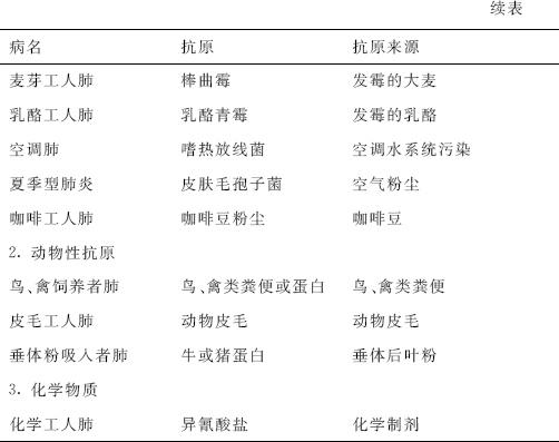 释义 | 外源性过敏性肺泡炎 一、概述 外源性过敏性肺泡炎(extrinsicallergic alveolitis,EAA),也称作过敏性肺炎(hypersensitivity pneumonitis,HP)是由反复吸入有机粉尘或化学活性物质所引起的免疫介导的肺部疾病。其主要的临床表现为发热、咳嗽、呼吸困难、低氧血症和全身肌肉及关节酸痛;基本的病理组织学改变是早期肺间质、肺泡和终末细支气管的弥漫性单核细胞浸润,继而常出现肉芽肿,晚期可发展为肺间质纤维化。 二、流行病学 本病好发于40岁以后。不论是特发性还是继发性肺间质纤维化,其发病率均呈逐年上升的趋势。 三、病因 多种过敏原均可引起本病,它们来源不同,多数为职业性接触抗原。依接触抗原的条件不同,可分别将本病称作农民肺、蔗尘肺、蘑菇工人肺、饲鸽者肺、化学工人肺等。近年来,一些与家庭环境有关的EAA也陆续出现,如湿化器肺、空调肺、夏季型肺炎等。导致EAA的抗原大多来源于微生物(如放线菌、细菌、真菌等)、动物、植物、小分子化学物质以及某些药物等(见表5-5)。 表5-5 常见的过敏性肺炎抗原及其来源 四、发病机制 吸入的抗原物质是否导致EAA的发生,取决于宿主和有机物的性质。目前为止,尚无一种免疫机制能解释所有的病理和临床表现。 1.宿主因素 目前易患EAA人群的基因背景尚未明确,但EAA的发生与宿主有密切关系。研究发现,在一定工作环境下,总有一小部分工人会出现EAA症状,其发生显然与接触粉尘有关,发生率在5%~20%之间。最近的一项问卷调查发现,有8%的养鸽者会出现EAA症状,有7%的农场工人和15%的在被污染的空调环境下工作的办公室职员会发生EAA,提示EAA的发生有一定的基因背景。EAA多发生在成年人,儿童仅偶然发生。过敏体质不是最重要的决定因素。有些研究提示,某些HLAⅡ型抗原(如HLA-DR、DR7和DQW3在一定人群中,与某些致病原密切相关,但至今尚未得到证实。 2.有机粉尘 有机物进入体内后可产生许多生物学作用,通过直接或间接途径对肺泡上皮细胞产生毒性作用。其直接毒性物质包括具有酶活性的化合物、内毒素、能导致非特异性沉淀素的物质和组胺。此外,某些有机物进人体内后可以直接激活补体途径,导致血管通透性升高和化学趋化因子的释放,使白细胞向肺内聚集。有机物可以激活肺泡巨噬细胞,导致细胞因子(如IL-1、TNF-a、PDGF等)、脂氧化酶代谢产物、过氧化物和蛋白酶的释放,这些介质均已被证实参与了EAA的发生。Denis等人研究发现,在试验动物模型和患者的支气管肺泡灌洗液(BALF)中均有高水平的IL-1和TNF-a的表达;如用抗TNF-a抗体中和TNF,则可明显抑制试验动物的EAA反应。 3.免疫病理机制 肥大细胞在EAA的发病机制中起着一定作用。有些学者报道,在农民肺患者的BALF中,肥大细胞数量明显增加,并且疾病的活动性与肺组织切片中肥大细胞数量有关。组织病理学研究发现这些肥大细胞呈脱颗粒状态。肥大细胞在EAA患者组织中数目增加的原因及其在EAA发病机制中的确切作用,目前仍不十分明确。有学者认为,肥大细胞的增加可能与IL-3的刺激有关,其可能的作用是调节炎症反应。 虽然农民肺患者组织中肥大细胞数目增加,但目前尚无直接证据证明EAA的发生与IgE介导的Ⅰ型变态反应有关。Muers等人认为,饲鸽者肺患者产生的Ⅰ型变态反应可能是由IgG亚型抗体介导所致,而不是IgE。虽然Wenzel等人发现,在农民肺患者肺活检组织中的单个核细胞且支气管壁上有Ig和补体的沉着,但到目前为止,也无足够的证据表明EAA与Ⅱ型变态反应有关。Ⅲ型变态反应被认为在EAA发病机制中起重要作用,免疫复合物不仅可以导致炎性细胞因子(如IL-1、TNF-a)的释放,而且可以激活肺泡巨噬细胞。但是,也有一些现象不支持这种假设:①沉淀性抗体与外界环境暴露有关,而与疾病无关,因为大多数已有沉淀性抗体的患者在持续接触抗原后并不发病;②患者在给予抗原吸入刺激后,血清补体水平并不下降;③肺组织病理学表现不是典型的抗原-抗体复合物介导的血管炎表现。虽然组织病理学发现可能与活检时疾病所处的不同时间有关,但有证据表明Ⅳ型变态反应在EAA的发病机制中起非常重要的作用,这解释了抑制细胞介导的超敏反应的药物(如醋酸可的松、抗巨噬细胞血清、抗某些致炎性细胞因子的抗体和环胞霉素)可以明显降低或抑制试验性肺肉芽肿发生的原因。 除组织学发现在肺泡和肺间质中有巨噬细胞、淋巴细胞的浸润外,患者也表现出许多与细胞免疫(T淋巴细胞依赖)和体液免疫(B淋巴细胞依赖)相关的免疫反应,如抗原诱导淋巴细胞增生、淋巴因子释放、特异性抗体和免疫球蛋白的产生等。Keller等人报道,无症状的慢性EAA患者的BALF中T细胞的百分比是增加的;当这些患者接触抗原后,其百分比更高。他们还同时发现,在饲鸽者肺患者的BALF中,T抑制细胞的活性是降低的。最近一项研究表明,夏季型肺炎患者BALF中的T淋巴细胞较外周血T细胞对刺激原的反应性要低,这种降低不是由于抑制性T细胞或抑制因子的存在,而是由于BALF中的T淋巴细胞产生IL-2的能力降低。以上都说明免疫调节存在着异常。 五、病理 大多数不同的EAA具有相似的病理改变,其主要依赖于吸入抗原的强度和做活检时疾病所处的阶段。 在疾病的早期(一般在发病的2周之内),病变主要累及呼吸性细支气管及相邻的血管和肺泡。其表现有:肺泡和间质有明显淋巴细胞、浆细胞和