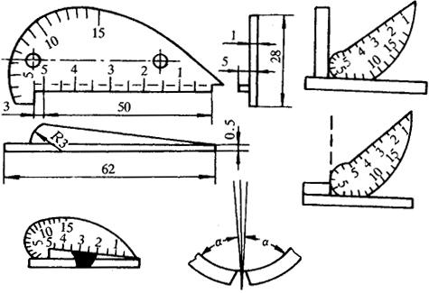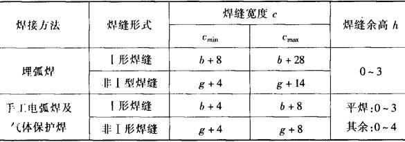 释义 | 外观检查和测量 1.外观检查的内容和方法 外观检查是用肉眼或借助样板,或用低倍放大镜(不大于5倍)观察焊件,以发现未熔合、表面气孔、咬边、焊瘤及裂纹等表面缺陷的检验方法。在测量焊缝外形尺寸时,可采用标准样板和量规。 样板和量规及其用法如图14-1、图14-2、图14-3所示。 图14-1 样板组和焊缝的测量 图14-2 检查焊缝用的量规 图14-3 万能量规的用法 (a)测量焊脚 (b)角焊缝凸度的测量 (c)角焊缝凹度的测量 (d)测量对接焊缝的余高 (e)坡口间隙的测量 (f)坡口角度的测量 在多层焊时,要特别重视根部焊道的外观检查,其理由是: (1)根部焊道的截面较弱,承受着收缩时产生的一切应力,且承受着在随后各层焊接时所产生的部分应力; (2)根部焊道系焊在冷态金属上,热影响区易产生淬硬层,故可能产生裂纹,且裂纹不可能在下一层施焊时自动消除; (3)根部焊道最易产生未焊透、气孔、夹杂等缺陷; 对低合金高强度钢作外观检查时,常需进行两次,即焊后检查1次,经15~30天以后再检一次,检查是否产生延迟裂纹。 对未填满的弧坑应特别仔细检查,以发现可能出现的弧坑裂纹。 2.钢结构焊缝外形尺寸(GB10854-88) (1)焊缝宽度与焊缝余高见表14-14所列。 表14-14 熔化焊焊缝宽度与余高 (mm) 注:1.表中b值为符合GB985、GB986标准要求的实际装配值。 2.g值为装配后坡口面处的最大间隙,可利用数字修约法计算到整数位。 GB10854还规定同一条焊缝cmax与cmin的差值,在焊缝任意50mm长度范围内不得大于4mm,整条焊缝长度内不得大于5mm;hmax与hmin的差值,在焊缝 任意25mm长度范围内不得大于2mm。 (2)焊缝边缘直线度(见表14-15): 表14-15 焊缝边缘直线度 (mm) (3)角焊缝焊脚尺寸偏差(见表14-16): 表14-16 角焊缝焊脚尺寸偏差 (mm) 3.二氧化碳气体保护焊角焊缝焊脚尺寸要求(见表14-17) 表14-17 CO2焊角焊缝K1值 (mm) 注:δ1为较薄板的厚度。 |