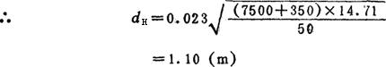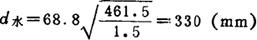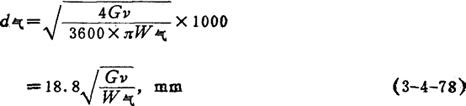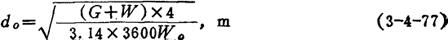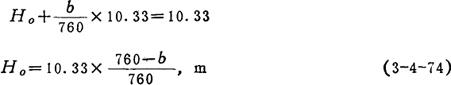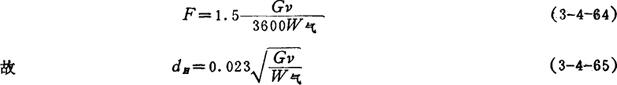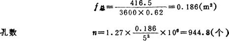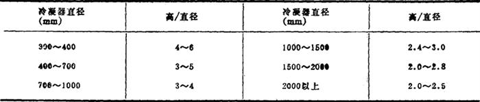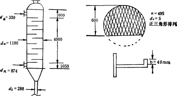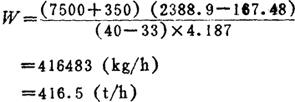 释义 | 大气式混合冷凝器的计算 1.冷凝器的直径dH 如取1.5的安全因素,则 式中 F——冷凝器自由截面积(m2) G——被冷凝蒸汽量(kg/h) v——蒸汽比容(m2/kg) W气——气体在冷凝器中允许速度(m/s) 气体速度W气,显然受到限制。它不能将下降水滴向上带走。水滴直径dW与允许气速W气的关系见表3-4-90。在9.8~18.6Pa即0.1~0.2kg/cm2绝对压力下,W气-般可取20~55(m/s)。 表3-4-90 气体在冷凝器中允许速度 2.淋水板尺寸 包括宽度、筛孔孔径和筛孔排列等。淋水板宽度须能保证冷却水在板上泛流,又不致过分减少蒸汽通过的面积,可取冷凝器半径加50mm。 水室淋水板宽度取0.8~0.9dH。 淋水板上有小孔,以减小液滴直径,加大其比表面积,利于气液热交换。增设若干筛板(且错排),利于液面翻新,加快传热。如果孔径太小,加工费时,也可能发生堵塞。当冷凝器直径小于1m、又采用清洁水时,小孔可取2~5mm;冷凝器直径大于1m时,小孔直径可取5mm。水质不好时,一般不小于5mm。 淋水板上小孔面积f(m2)为: 式中 W孔——水通过小孔流速(m/s) W——冷却水用量(kg/h) 冷却水量可由上式求得,也可以根据制盐经验取四效二次蒸汽量的60~100倍(视冷却水温而定)。 W孔与淋水板上溢流堰高度有关,堰高取为40mm时,W孔可取0.62m/s,此时开孔率(f/F)约为0.025~0.1。 淋水板孔数n孔为: 式中 d孔——淋水孔直径(mm) 淋水孔按正三角形排列。 3.冷凝器高度H 与淋水板孔数n、板间距h、水滴直径dW以及水的受热程度等有关。具体计算如下: (1)选用淋水板间距h和水滴直径dW淋水板间距h一般为300~400mm。但蒸汽在由下向上流动时,水蒸汽逐渐凝缩为水,气体体积逐渐减小,淋水板间距可适当由下而上逐减30~50mm。冷却水进口第一层淋水板和出口第m层板以下的空间高度,应较一般板间距大200mm。 (2)确定冷却水受热程度 受热程度(θ)为水的实际受热程度与理论上最大受热程度之比,即 式中 T——冷凝器压力下的饱和水蒸汽温度(℃) t1、t2——冷却水进出口温度(℃) 水蒸汽冷凝时θ与dW、h的关系,见表3-4-91。 表3-4-91 混合冷凝器中水的受热程度 (3)计算板数 选定板距h及水滴直径dW后,查出水的受热程度θ,然后可由θ求经过每块淋水板后的冷却水温度如下: 由前面受热程度公式得: t1′=t1+θ(T-t1) (3-4-70) t2′=t1′+θ(T-t1′) (3-4-71) ……………………… tm′=tm-1′+θ(T-t′m-1) (3-4-72) 式中 t1′、t2′……t′m为冷凝水经第1、2,……m块淋水板后的温度。当t′m等于或接近于冷却水出口水温t2时,即可算出淋水板数m块。有时实际板数须在计算数上再加10~30%的安全系数。 (4)计算高度 设实际板数为m块,上空间高度各为600mm,则冷凝器的总高Z近似为: Z=(m-1)h+0.6+1.2,m (3-4-73) 下空间高度为蒸汽进口管径1.2倍。 4.气压管长度l 在正常大气压(1.0133×105Pa)下,根据静力平衡,气压管内水柱最小高度H0应为: 式中 b——冷凝器中真空度(mmHg) 气压管内应有一定的压头h0以克服管内阻力。若取水的进口阻力系数ξ1=0.5,出口阻力系数ξ2=1,则 式中 W——水在气压管中流速(m/s) l——气压管长度(m) d——气压管内径(m) λ——管壁摩擦系数 g——重力加速度(m/s2) 为防止因大气压波动造成气压管内水倒灌的可能性,可将气压管长增加0.5m,其总长为: l=Ho+ho+0.5,m (3-4-76) 实际上,一般取L为11m,可满足要求。 5.气压管直径do按下式计算: 式中 G——蒸汽量(kg/h) W——冷却水量(kg/h) Wo——水在气压管中流速(m/s),一般取1.0~2m/s。 6.气体和冷却水进口管径 (1)气体进冷凝器管径d气按下式计算: 式中 G——进冷凝器蒸汽量,包括从脱气器进入量(kg/h) W气——蒸汽流速(m/s),一般取50m/s v——蒸汽比容(m3/kg) (2)冷却水进水管直径d水按下式计算: 式中 W——冷却水量(m3/h) W水——冷却水流速(m/s),一般取1.5m/s 7.冷凝器直径与高度关系 可计算确定,一般如表3-4-92。 表3-4-92 混合冷凝器直径与膏度关系 混合冷凝器设计实例:某制盐厂的多效蒸发装置,末效蒸发水量为7500kg/h,由脱氧器蒸发水量为350kg/h,冷凝器内气体压强为1×104Pa。冷却水进水温度为30℃,出水温度为40℃,试设计一混合式冷凝器。 解:(1)冷凝器直径dn: 取蒸汽流速W气为50m/s,对应蒸汽比容为14.71m3/kg (2)冷却水消耗量: (3)弓形淋水板有关尺寸: 取W孔为0.62m/s,孔径为5mm, 取 n=945个 水室第一淋水板宽度为1.1× (4)冷凝器高度Z: 孔径5mm,若平均间距h平=400,查得θ=0.104,则: t′1=t1+θ(T-t1) =30+0.104(45.3-30)=31.59(℃) t′2=31.59+0.104(45.3-31.59)=33.01(℃) t′3=33.01+0.104(45.3-33.01)=34.29(℃) t′4=34.29+0.104(45.3-34.29)=35.43(℃) t′5=35.43+0.104(45.3-35.43)=36.48(℃) t′6=36.48+0.104(45.3-36.48)=37.40(℃) t′7=37.40+0.104(45.3-36.48)=38.22(℃) t′8=38.22+0.104(45.3-36.48)=38.96(℃) t′9=38.96+0.104(45.3-38.96)=39.62(℃) t′10=36·62+0.104(45.3-39.62)=40.21(℃) 出水温度为40℃,故可选用11块淋水板。 按设计 Z=(m-1)h+0.6+1.2d汽(m) =(11-1)×0.4+0.6+1.05=5.65(m) (5)气压管长度L,选用11m。 (6)气压管直径do (7)蒸汽管进口管径(流速取80m/s) (8)冷却水管径d水 冷凝器计算结果如图3-4-77。 图3-4-77 冷凝器及淋水板主要尺寸 |