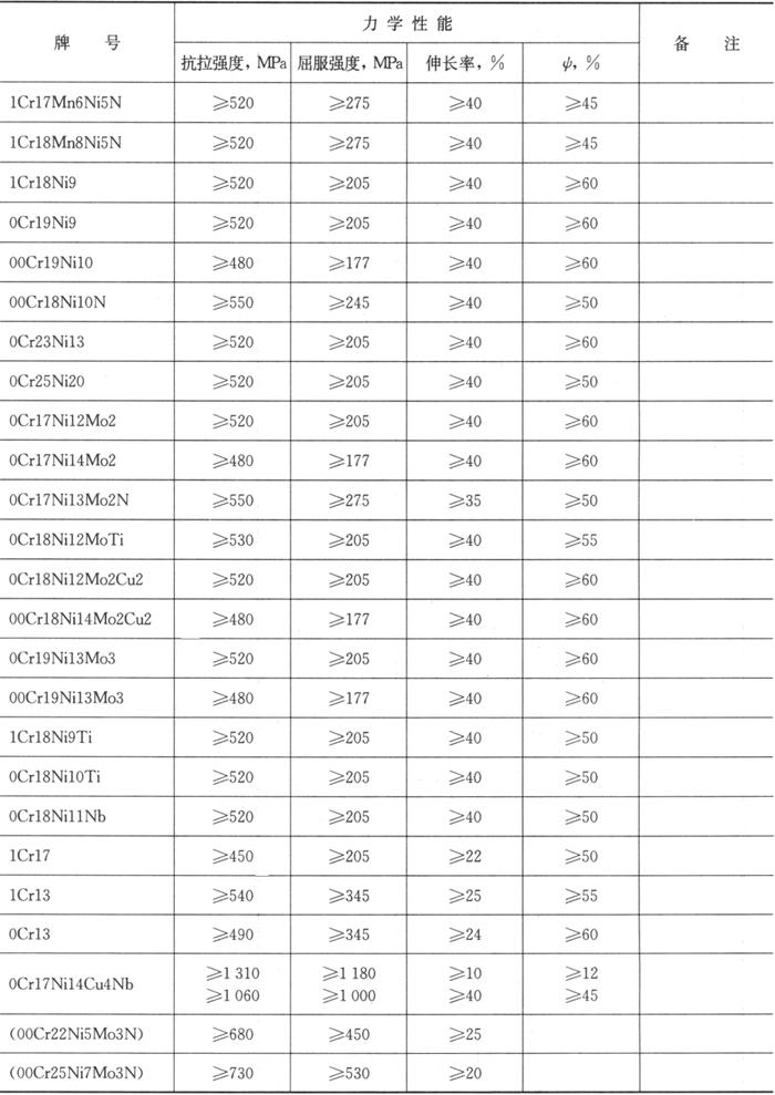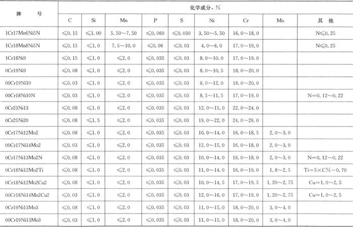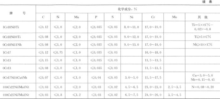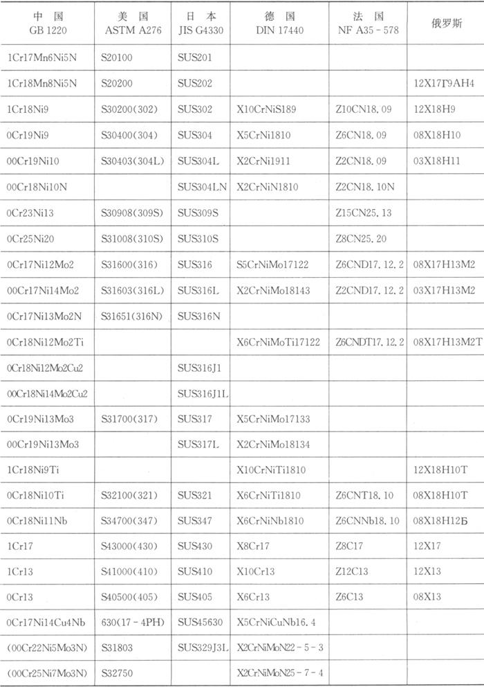 释义 | 奥氏体-铁素体型不锈钢 其显微组织为奥氏体加铁素体。铁素体的体积分数小于10%的不锈钢,它与相同碳量的奥氏体型不锈钢相比,具有较小的晶间腐蚀倾向和较高的力学性能,且韧性比铁素体型不锈钢好。同时,少量铁素体的存在,还有利奥氏体型不锈钢在施焊过程中,防止焊缝热裂纹的形成。这类钢通常还是被纳入奥氏体型不锈钢范畴。 当铁素体含量在30%~60%时,该类钢具有特殊抗点蚀、抗应力腐蚀性能,从金相组织上分类,属于典型的双相不锈钢。这类钢的屈服强度约为一般奥氏体不锈钢的2倍,除了具有耐蚀性外,还具有较好的抗晶间腐蚀性能。它已在大化肥厂尿素冷却器以及化工厂制盐蒸发设备的装置等方面推广使用,是新型抗应力腐蚀的钢种,是机械加工、冷冲压和焊接性能均良好的一种有发展前景的钢种。 归纳起来,不锈钢大致可分为铁素体(马氏体)铬不锈钢、奥氏体铬镍不锈钢和奥氏体铁素体双相不锈钢。 表3.1-1、表3.1-2分别列出我国通常用于焊接结构件的不锈钢牌号、化学成分和力学性能。表3.1-3列出各国不锈钢牌号的对照。 表3.1-1 我国不锈钢的化学成分(GB/T 1220-1992) 表3.1-2 我国不锈钢的力学性能(GB/T 1220-1992) 表3.1-3 各国不锈钢牌号对照 |