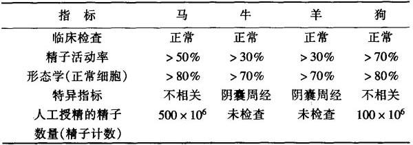 释义 | 如何判断饲养动物的生育力? 不同种动物的不孕症诊断 雄性动物治疗的评价 牛、猪、狗、羊和马常常进行雄性或生育健康体格检查。本节讨论有关它们之间的生殖健康体格检查在解剖学和生理学上的差异,并进一步讨论常见生殖系统疾病的诊断。 生殖功能的种族特异性 不同种动物之间,睾丸和附睾的基本结构及其组成在解剖学上略有差异。除狗外,其他动物的附属性腺包括精囊腺、前列腺和尿道球腺。但是,狗的附属性腺仅由前列腺构成。狗的前列腺类似人类,呈球形,围绕尿道。随着年龄增长,常发生前列腺增生症(BPH)。在解剖学上,阴茎分为3种类型。所有动物的阴茎在未勃起状态下包含在包皮内。猪、牛和羊的阴茎由弹性纤维组织构成,在未勃起状态下,呈中等硬度,弯曲呈“S”形。阴茎勃起由于阴茎海绵体充血所致。马的阴茎如同人类,具有勃起能力。海绵体充血时,阴茎变长、增粗。狗的阴茎呈骨性,在未完全勃起之前,就具有性交能力。性交时,海绵体的特殊区域—阴茎头发生充血。阴茎进入阴道后,阴道前庭肌肉收缩,雌狗和雄狗之间出现机械扣锁,固定在一起。除猪外,其他动物的睾丸悬挂于后腿间;而猪却位于后腿尾部。 在不同种动物之间。精子发生的时间不同,为39~61d;在附睾运行的时间为7~17d。在附睾运行过程中,精子在附睾头部和体部运行2~5d,并且逐渐成熟。在剩余的4~14d,直到射精和随尿排泄前,精子一直停留和贮存在附睾尾部。精子头部具有相同的外观特征,呈“蹄”形,顶体位于细胞核和细胞膜之间。有关精子其他特征已在精液一节中描述。精子形态学已经被详细地研究和分析。例如:猪和羊的精子形态学研究发现,精子特异性缺陷与精子不能使卵子受精和正常胚胎不能形成有关。 牛、狗和马每克睾丸组织每天的精子产生的数量为(10~19)×106个,羊和猪为(21~25)×106个。因此,狗双侧睾丸每天精子产生的数量为0.4×109个,牛、羊和马为(5~8)×109个。猪的睾丸重量>700g,精子产生数量为16×109个。双侧附睾贮存的精子数量,狗为(2~5)×109个,牛和马为(30~80)×109个,猪和羊为(100~130)×109个。频繁射精能够降低贮存在附睾尾部的精子数量,并且在1d中频繁射精可以使精子数量下降到原来数量的50%。 如同其他哺乳类动物,GnRH、LH、FSH,睾酮和雌二醇参与这些动物的生殖内分泌调节。其中,睾酮和雌二醇参与生殖内分泌的负反馈调节机制。许多饲养动物和宠物的LH脉冲频率和幅度具有每天和(或)季节性变化。因此,外周血中的睾酮水平也发生变化。 马和羊的季节性变化尤其具有意义,因为它们的雌性只在一年有限的一段时间具有典型的性接受期。下丘脑—垂体轴控制的睾丸具有明显季节性变化,尽管全年都有精子产生,但是精子产生的数量有波动性,范围为30%~50%。这种内源性生殖周期的季节性变化是受动物光照期控制。 生殖健康体格检查的原因 饲养动物和宠物的精液采集相对容易,这对兽医具有很大益处。尤其对牛而言,可以充分利用优良品种的牛作人工授精。在动物卖买或交配之前,兽医通过雄性动物生殖器官或精液的详细检查进行全面评价。通过对雄性动物作全面评价,就能确定“雄性动物此时能否配种,以及不能配种的原因是由于生育力低下还是其他原因。”动物不能配种,可能是由于生殖健康体格检查(表17-1)中的一项或多项不合格。这样就可建议动物管理者不用该动物配种。然而,1~6个月后,生殖健康体格检查可能合格。如果生殖健康体格检查合格,配种动物与健康雌性动物交配后,将具有生育能力。但是,有时漏诊(或后来情况发生变化)。此外,还会存有另一种情况:动物管理者怀疑或发现配种动物比以前或正常的生育力下降或是精液质量“差”,这种情况常在种狗、马和牛中发生。兽医应解决两个问题:“精液质量、生育能力或性交能力低的原因”以及“诊断水平的提高”。有些疾病能够被诊断明确并且治疗也有显着疗效,但有时由于生殖病理生理知识的不足以及经济原因,有效的治疗被迫中断而不再继续进行治疗。 表17-1 饲养动物生殖健康体格检查指标的正常范围 注:选自Society for Theriogenology Handbook,1994,Society for Theriogenology,American Cillege of Theriogenogists,Hastings,NE 精液采集和分析 精液采集有3种标准方法。第1种是人工阴道法(AV),适用于各种配种动物。当配种动物爬在能够引起发情的动物或模型上时,把阴茎弯曲在人工阴道中,精液就会采集到。人工阴道是由乳胶制成的圆柱体,盛有温水,具有一定的温度和(或)压力,如同生理状态,十分适合于配种动物,有些配种动物常有类似具有射精能力的动物的射精。人工阴道法是马和牛首选的方法,其应用的主要限制是必须习惯于这种方法。第2种是手淫法,适用于猪和狗。当猪、狗爬在发情的雌性动物或模型上时,采精者抓住伸直阴茎的末端,模仿阴茎在雌猪宫颈螺旋运动或雌狗阴道前庭肌肉收缩的性交动作,手淫采集精液。第3种是电刺激射精法(EE),常应用于牛和羊。电极经直肠按放在位于盆腔的附属性腺背侧,轻度电流有节律地刺激其支配神经。在采精过程中,配种动物要适度约束。电刺激射精法采集的精液比人工阴道法稀释,但是精子运动能力和形态学没有发生变化。在采精尤其是人工阴道法过程中,应重点意识到对采精者和配种动物的危险性。更重要的是,尽管采集的精子数量和质量可以用于诊