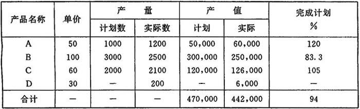释义 | 如何进行产品品种计划完成情况分析? 对产品品种计划完成情况进行分析,主要是分析品种数量完成率、品种产量完成率和品种计划平均完成百分率三项指标。品种数量完成率是已完成产量计划的品种数与计划品种数的比率。例如某企业有甲乙丙三种产品,其计划产量分别为1000、3000、2000件,实际产量分别为1200、2500、2100件。可见乙产品未完成计划,故其品种数量完成率为2/3×100%=66.7%。品种产量完成率是符合计划的实际产值与计划产值的比,通过分析可查明实际生产的产量中符合原定计划的产量是多少,例如某企业有下述资料: 上表看出,企业全部产品实际产值为442,000元,完成计划的94%,主要是B产品未完成计划所致,尚若扣除计划外生产的D产品,则产值完成率更低。按符合计划的产量来计算品种完成率则为: 品种计划平均完成百分率是根据下述原则来计算的:超额完成产量计划的品种按100%计算,未完成产量计划的品种按实际完成的百分比算,计划外产品不予计算,依上例,该企业的品种计划完成平均百分率为: |