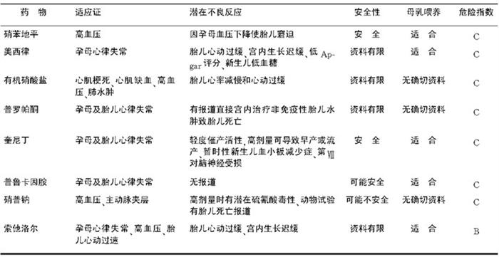 释义 | 妊娠期抗心律失常药物应用 鉴于妊娠期妇女心血管系统特点以及所有药物都可能对胎儿有潜在的不利影响,故孕期应尽量避免使用任何药物。若因合并某些疾病确需用药者,则需根据风险/效益比慎重选择药物。妊娠期常见的心血管病包括高血压、心律失常、病毒性心肌炎、风湿性心脏病、先天性心脏病以及心肌病等,因此妊娠期应用心血管病药物尤需重视药物的毒副作用,包括妊娠早期致畸作用、妊娠中期对胎儿危害及妊娠晚期致分娩障碍等。本节主要就常用心血管病药物在妊娠期作用及不良反应进行讨论。常见妊娠期心血管药物的安全性及不良反应见表6-5-1。 【正性肌力药】 (一) 洋地黄制剂 目前已见诸有关地高辛治疗充血性心力衰竭以及室上性快速性心律失常的报道。洋地黄制剂可通过胎盘血流屏障,通常胎儿与母亲的血清地高辛浓度比为0.5~1.0,足月胎儿脐血中地高辛浓度与母体相似。应加以注意的是孕妇合并高血压时,体内尚有地高辛样物质含量增加,故血清地高辛浓度测值可能较实际血药浓度为高,误差约为2μg/ml。由于妊娠期血容量增加、肾小球滤过率增加,血清地高辛浓度相对较低,故一般认为妊娠期使用洋地黄制剂是安全的,且不必减量。但须注意过量的洋地黄仍可能危及孕妇和胎儿的生命。有报道应用地高辛者,其胎儿出生后体重较低且生长迟缓,推测可能与地高辛影响胎盘的氨基酸运输有关,但尚未得到进一步证实。试验发现地高辛可使离体子宫收缩力增强,且业已证实长期使用地高辛的孕妇,其孕期均较非洋地黄化的孕妇为短,故有认为低体重儿实为早产所致,而非真正的宫内生长迟缓。 表6-5-1 妊娠期常见心血管药物安全性及不良反应 (续 表) (二) β受体激动剂 β受体激动剂可导致子宫肌松弛。如沙丁胺醇(舒喘灵)使平滑肌松弛同时可抑制妊娠子宫收缩。异丙肾上腺素常用于高度房室传导阻滞、QT延长综合征所致心律失常和原发性肺动脉高压等,离体子宫和体内试验证实该药能部分抑制未妊娠子宫和完全抑制妊娠子宫的收缩,但对孕母及胎儿均无明显不良反应。 【抗心律失常药物】 (一) 奎尼丁 奎尼丁主要用于治疗孕母及胎儿室上性心律失常,大量临床资料证明该药在妊娠期应用多年是安全有效的,未见胎儿畸形且子宫肌也极少受累。但中毒剂量的奎尼丁则可引起早产、流产或损伤胎儿第Ⅷ对脑神经。可能的不良反应包括胎儿血小板减少症和在自发性宫缩时减低催产素的活性。 (二) 普鲁卡因胺 该药亦可有效地治疗孕妇和胎儿的室上性心动过速,且有报道认为本品无致畸作用。但目前临床应用经验有限,故仍推荐将奎尼丁作为Ⅰa类抗心律失常的首选药物。 (三) 丙吡胺 与普鲁卡因胺相类似,目前仍缺乏足够的临床资料。少数个案报道本品用为治疗孕期室性或室上性心律失常,无致畸作用。有证据表明该药可通过胎盘血流屏障,但脐血中药物浓度较低,有一例触发宫缩的报道。母鼠试验证实大剂量应用者小胎儿发生率较高。由于资料有限,目前建议用于不能耐受奎尼丁或经奎尼丁治疗无效者。 (四) 苯妥英钠 该药除用为治疗癫癎外,亦为洋地黄中毒致快速性心律失常的有效药物。临床资料发现服用该药的妊娠妇女可致胎儿畸形,命名为“乙酰脲胎儿综合征”,具有活动、智力迟钝,小头畸形,甲状腺发育不良等特征。其他先天畸形尚有心脏缺损、腭裂、眼睑下垂等。亦可见胎儿出血。鉴于上述不良反应,故该药不宜用于妊娠妇女。 (五) 利多卡因 主要用于孕期的硬膜外或局部麻醉,偶有作为抗心律失常或用于急性心肌梗死的报道。作为弱碱性药物,利多卡因可能在酸性环境中更易吸收。因此对有胎儿酸中毒的胎儿窘迫病例应慎用本品。 (六) 美西律 少数报道发现该药可引起胎儿心动过缓、低体重儿、低Apgar评分及新生儿低血糖,但未见诸致畸和远期不良反应的报道。鉴于该药资料有限及以上有关不良反应的报道,故不主张孕期应用本品。 (七) 氟卡尼 有临床报道应用该药后引起胎儿死亡。但尚无确切证据表明死亡与氟卡尼有关,故氟卡尼的安全性尚待进一步明确。 (八) 胺碘酮 近年来应用胺碘酮治疗孕母及胎儿心律失常的报道日益增加。一项回顾性分析发现接受胺碘酮治疗的孕妇中,53%的新生儿无并发症、15%有轻微不良反应(包括心动过缓、QT间期延长等)、9%有甲状腺功能减退、12%早产和21%低体重儿。由于上述不良反应的有关报道,故目前建议在无进一步关于该药安全性评估的临床研究之前,应用本品需密切监测孕母或新生儿的甲状腺大小和功能。 (九) 阿托品 该药主要用为症状性心动过缓,可通过胎盘屏障,但并无引起胎儿畸形的报道。可能的不良反应主要为对子宫肌有负性肌力作用。另孕妇静脉应用者可使胎儿心率增快。 【钙离子拮抗剂】 (一) 维拉帕米 该药可用为治疗孕母及胎儿室上性心律失常、早产、先兆子癎和妊高征合并严重蛋白尿。快速静脉注射可能导致母体低血压和胎儿宫内窘迫。 (二) 硝苯地平 该药主要用于高血压的治疗,多项研究表明该药是安全、有效的。仅有1例孕妇舌下含服本品后出现孕母低血压和胎儿窘迫。 (三) 地尔硫 适用于心肌缺血、高血压及室上性心动过速等。目前临床资料有限,有限的资料未发现对胎儿的毒副作用。 【β受体阻滞剂】 常用于治疗高血压、快速性心律失常