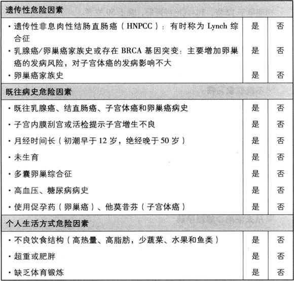 释义 | 子宫体癌和卵巢癌 子宫体癌和卵巢癌的一般知识 和乳房一样,女性的生殖器官子宫和卵巢,也是女性完整性和性征的重要组成部分。子宫体的癌症称为子宫体癌,卵巢的癌症称为卵巢癌,和宫颈癌一样是女性生殖器官最常见的肿瘤。阴道癌和外阴癌比较少见。输卵管连接卵巢和子宫,输卵管癌也极其少见。 尽管宫颈在解剖学上是子宫的一部分,但由于发病原因不同,初级预防和筛查的方法与子宫体癌和卵巢癌也有很大差别,我们已单独介绍了宫颈癌的有关内容。子宫体癌和卵巢癌因病因相近,初级预防和筛查方法也比较相似,本节将这两种癌症一起叙述。 每年全球约有150000位女性被诊断患有子宫体癌。子宫体癌早期发现并适当治疗,其预后较好,3/4或更多的患者不会影响寿命。如果发现较晚,已经扩散到子宫外,则远期预后较差。 卵巢癌恶性程度很高,早期一般不易诊断。全球2003年发生卵巢癌的女性患者约170000名。癌症发现时病变局限在卵巢内,其远期预后较好,90%以上的妇女不影响正常寿命。然而,一旦癌症已经扩散到卵巢外,2/3的癌症患者预后较差,远期生存率下降到25%或更低。 子宫体癌和卵巢癌的早期症状和体征 子宫体癌:妇女绝经后阴道异常出血是最重要的症状和体征,尚未绝经的妇女月经间期出血或月经期经量异常增多,也是早期体征。有九成的子宫体癌患者有异常阴道出血。然而,异常的阴道出血也可以由子宫纤维瘤引起。 卵巢癌:一般指的是早期卵巢癌,主要的体征有隐约的不适感、腹部肿块,有时伴恶心、食欲不振和尿频等。但这些体征没有特异性,其他疾病也可能出现同样的症状。医生检查出卵巢部位的肿块是卵巢癌最重要的体征。 子宫体癌和卵巢癌的癌前病变 女性子宫纤维瘤很常见,是一种几乎不恶变的良性病变。为确定子宫异常出血的病因,实施刮宫术可刮出子宫内膜,异常组织在显微镜下可提示为“增生”、“发育不良”,这些都是癌前病变。 卵巢囊肿在女性也很常见,充满液体的囊性肿物一般不是恶性的。如果在囊肿内膜上有固体成分存在,则是癌前病变或卵巢癌的早期。此外,多囊卵巢综合征也是一种癌前病变。 子宫体癌和卵巢癌的病因 这两种癌的病因一般一起描述,因为它们既相似又互相重叠。有趣的是子宫体癌和卵巢癌的病因极其相似,且与乳腺癌的病因也有重叠。这提示科学家们,和乳腺癌一样,这些肿瘤的发生也可能与女性性激素有关。 遗传因素 遗传性非息肉性结肠直肠癌 遗传性非息肉性结肠直肠癌又称Lynch综合征。有这样家族病史的女性不仅易患结肠直肠癌,还易患子宫体癌,少数人还会患卵巢癌,这可能与一组基因的突变有关,包括MSH2、MLH2、PMS1、PMS2和MSH6。 乳腺癌/卵巢癌 乳腺癌和卵巢癌同时发生并不多见,一般伴有基因BRCA1、BRCA2的突变。 既往病史 既往有乳腺癌、结肠直肠癌、卵巢癌或子宫体癌的病史 有子宫体癌和卵巢癌病史,再次发生癌症的风险加倍。 过度使用雌激素的激素替代疗法 这会轻度增加子宫体癌的发病风险,对卵巢癌的发病没有影响。最近使用较多的配伍用药——雌激素和黄体激素联合使用,可能不会增加女性患子宫体癌的风险。而口服避孕药常常会降低女性患子宫体癌和卵巢癌的风险。 多囊卵巢综合征 两侧卵巢多囊病变的女性患子宫体癌的风险会增加。 促孕药 这类药物会增加卵巢癌的发病风险。 他莫昔芬(治疗乳腺癌) 服用他莫昔芬可能会增加子宫体癌的发病风险。 月经时间长 初潮早于12岁,和/或绝经延后,晚于50岁者。 未生育者、高血压/糖尿病患者 这类人发病风险也较高。 个人生活方式 不良饮食习惯 大量摄入高热量、高脂肪食物,很少摄入蔬菜、水果和鱼类。大量摄入豆类食品比如大豆,可以降低子宫体癌的发病风险。 超重或肥胖 可能会增加子宫体癌和卵巢癌的发病风险。 缺乏体育锻炼 常常伴有体重超重、肥胖和饮食不当。 从未使用口服避孕药 这类女性更倾向于患子宫体癌和卵巢癌,原因尚不确定,口服避孕药的使用会降低这两种癌症的发病风险。 你会得子宫体癌和卵巢癌吗 如果女性在表3-7中有一项或超过一项选择“是”,则属于高风险个体。50岁或50岁以上妇女,在表3-7中未选择“是”,则属于平均风险个体。 表3-7 子宫体癌和卵巢癌的发病危险因素 怎样预防子宫体癌和卵巢癌 因为针对这两种癌没有有效的筛查手段,因此初级预防非常重要。 饮食预防 在第二部分癌症预防饮食建议中提到,低热量的饮食尤其重要,即减少脂肪和糖的摄入量,多吃蔬菜和水果,多食用富含β-胡萝卜素、维生素C、叶酸的食物和鱼类。最近一项研究结果显示,经常摄入豆类,比如大豆、豌豆,对预防子宫体癌会有帮助。 控制体重 肥胖会增加子宫体癌和卵巢癌的发病风险。 体育锻炼 为预防子宫体癌和卵巢癌,建议每周至少五天,进行每日30分钟以上的中度活动。在运动计划实施前,应该和医生讨论确认运动计划是否与身体状况相符合。 卵巢切除术 40岁时切除双侧卵巢可以降低卵巢癌的发病率,使因BRCA1和BRCA2发病的乳腺癌发病率降低一半。 通过筛查早期发现子宫体癌和卵巢癌 对于子宫体癌和卵巢癌,现在还没有既简单又有效的筛查手段。然而,可以通过一系列的检查,提高早期发现子宫体癌和卵巢癌的几率,尤其是针对高危人群。体检时进行盆腔和阴道检查可以早期发现子宫体