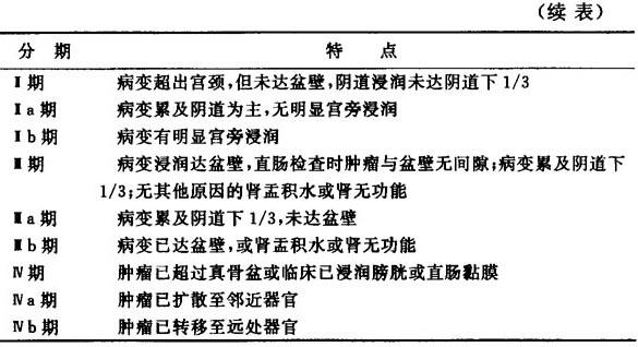 释义 | 子宫颈肿瘤 生长在子宫颈的肿瘤因妇科窥诊而易被发现,可有良性和恶性之分。 一、子宫颈良性肿瘤 (一)子宫颈息肉 良性息肉来自宫颈管黏膜,呈蒂状,多数认为与子宫颈慢性炎症有关。 【诊断】 1.临床表现 (1)症状 一般可为不规则的阴道出血或性生活后出血,息肉较大时,可出现白带增多,血性白带或接触性出血。 (2)体征 1)窥器下可见单个或多发的有蒂,鲜红色或暗红色质脆,大小一般在1cm以下,偶可见达数厘米者。 2)局部触之易出血,有时息肉可感染而形成局部坏死,常可同时伴有宫颈慢性炎症证象,少数可恶变。 2.辅助检查 窥器下看到息肉后,应作宫颈刮片,阴道镜等检查,有助于与宫颈癌、肉瘤等鉴别,较大息肉时应与宫颈肌瘤、黏膜下肌瘤、子宫内膜息肉脱出宫颈相鉴别。 【治疗】 小息肉蒂根作钳夹后扭下送病理检查,局部出血可用纱布填塞止血,较大息肉时,根部作结扎并切除送病理检查。 (二)子宫颈肌瘤 常见于宫颈后唇,与子宫其他部位肌瘤相似,通常可有蒂,增大时,有局部压迫症状及造成盆腔器官变形。 【诊断】 (1)症状 白带增多,感染时伴脓血样带,子宫颈肌瘤增大时可有膀胱压迫症状,向后生长时可有直肠压迫症状,或有输尿管受压,肾盂积水、感染等出现。 (2)体征 宫颈增大不均匀,为肿瘤压迫而突出,而另外无肿瘤的宫颈可拉平,较大时阴道可为肌瘤所充塞,应与子宫内翻,带蒂黏膜下肌瘤,巨大子宫颈息肉相鉴别。 【治疗】 较小、带蒂的肌瘤可经阴道摘除,较大有压迫症状时应作全子宫切除,术时应注意手术较困难,注意邻近器官创伤之可能,必要时先用GnRH-a治疗,待肌瘤缩小后再手术(详见子宫肌瘤节)。肌瘤较小,又无症状,已近绝经年龄可随访观察。 (三)子宫颈白斑 目前认为与子宫颈癌发生有密切关系,有认为与内分泌因素或局部慢性炎症相关 【诊断】 1.临床表现 (1)症状 一般白斑无症状,合并慢性炎症时可白带增多,局部易接触性出血。 (2)体征 子宫颈局部可见形态、大小、数目不等的不透明的白色区域,高出于周围黏膜面,表面白斑刮去后,可见底部有点状出血。 2.辅助检查 (1)碘液试验 局部涂碘后不着色,以此来确定病变范围。 (2)阴道镜检查 在碘液涂后确定范围的情况下,作局部阴道镜检查,并作局部活检,以排除早期癌变。 【治疗】 在排除恶变病况下,可作宫颈冷冻、电熨或激光治疗,经久不愈的宫颈重度糜烂者,可作锥形切除,作详细的病理检查排除恶变。 二、子宫颈恶性肿瘤 (一)子宫颈癌 子宫颈癌是女性生殖器中最常见的恶性肿瘤之一,以35~55岁为多见,其病因可谓多因素综合所致,与性生活有直接关系,可以与早婚、早育、多产、乱交、宫颈炎症及病毒的感染有着一定的关系。 子宫颈癌可分为鳞状上皮细胞癌(约占95%以上)与腺癌,按其发生、发展,在病理上可分不典型增生,原位癌及浸润癌。 临床分期见表1.5.2。 表1.5.2 子宫颈癌FIGO分期(1994年) 【诊断】 1.临床表现 (1)症状 Ⅰ期以前常无典型症状,只在子宫颈细胞学常检查时发现,当癌肿浸润性后,常见有性交后出血,白带增多,当癌肿坏死时可有不规则阴道出血,稀薄、水样、带血、伴恶臭的排出物,晚期由于侵犯直肠,可有便血及直肠瘘等出现,同时全身往往合并恶液质等症状。 (2)体征 原位癌和早期浸润癌难以肉眼观察诊断,当癌肿发展时,可出现宫颈局部呈溃疡,表面坏死,边缘坚硬,底部高低不平,易出血,向外生长时呈现菜花样增生,脆而易出血,最易被忽略的为在颈管内生长,形成圆柱状子宫颈增大,坚硬,而宫颈表面可光滑而被漏诊,应引起注意。 妇科检查时早期常为一般宫颈炎的表现,应仔细作双合诊,三合诊检查,检查宫颈病变与周围组织状态,以确定各部位有无浸润及程度,可作出较为正确的临床分期。 2.辅助检查 (1)子宫颈刮片细胞学检查常用于筛检宫颈癌的辅助方法之一,取材应在宫颈移行带处,显微镜下读片需认真细致,切忌追求读片数量,以免漏诊及误诊。 防癌涂片用巴氏染色,结果分5级:Ⅰ正常;Ⅱ炎症引起;Ⅲ可疑;Ⅳ可疑阳性;Ⅴ阳性。Ⅲ,Ⅳ,Ⅴ级涂片必须进一步检查明确诊断,Ⅱ级涂片应在按炎症处理后重复涂片,作进一步检查。 (2)碘试验 碘溶液涂在宫颈及阴道壁上,观察其染色情况,在不染色区域进行活检取材可以提高阳性率。 (3)激光肿瘤固有荧光诊断法在病变区出现有色、荧光阳性提示有病变可能。 (4)阴道镜检查 宫颈刮片细胞Ⅲ级或Ⅳ以上,或有荧光阳性时,检查可示有无异型上皮或早期癌变,可确定病变部位,再作活检。目前,阴道镜检查已成为检查宫颈病变的最常用方法。 (5)子宫颈和子宫颈管活组织检查 应作为最后诊断依据,一般在宫颈移行带处,3,6,9,12点处活检,或在上述各辅助方法,可疑部位处取标本送病理检查,所取组织应有上皮组织,又要有间质组织。若刮片报告为Ⅲ级以上,活检报告阴性时,应用小刮匙搔刮宫颈管,括出物送病检。 (6)宫颈锥形切除 对刮片阳性,而活检阴性者,或活检原位癌不能排除浸润癌时,作此手术取组织进一步仔细检查。 (7)宫颈癌明确诊断后,应依病员具体病变情况进行肺片、膀胱镜、肾盂造影、直肠镜检查,亦有主张增加淋巴造影等检查,以确定其临床分期。 3.鉴别诊断 临床上应对子宫颈炎,结核、息肉、阿米巴性宫颈炎,妊娠时宫颈乳头状瘤,葡萄状肉瘤及下疳作鉴别,主要靠病理检查排除上述病变。 【治疗】 1.治疗原则 预防