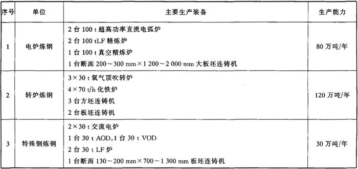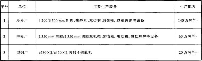 表2 轧钢主要装备和生产能力