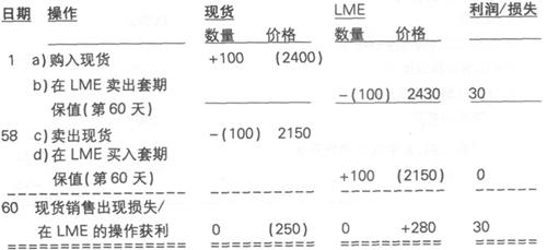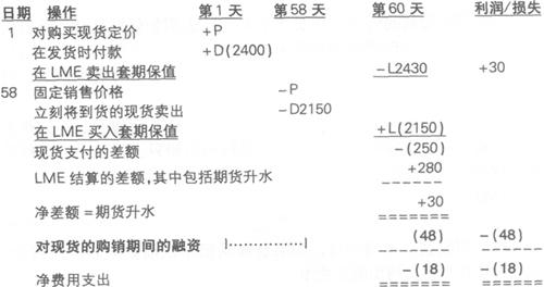 释义 | 对库存货物的套期保值或融资 存在风险金属的公式(详见第7.6节)表明如何推算全部开放头寸的整体风险。而根据公司经营策略的不同,基础库存可能会被包括进去,也可能不被包括进去。但如果未对基础库存进行套期保值,就会存在风险。 交易者在完成购入、定价和支付手续后会拥有金属存货,这些金属可能被贮存于仓库中,也可能仍在运输中的船只上,但无论哪种情况,这些金属都占用了资金。 目的 在前面的例子中,付款是在货物运达时进行的,因此可获得期货升水的全部收益。本例假设,如果金属从很早以前就开始占用资金,那么期货升水将会增加融资成本。 假设条件 第1天: 定价购买现货并支付货款,同时进行60天期的套期保值操作,当时现货价格2400,每月期货升水为15。 每年融资成本12%(即每月1%),所以2个月融资成本为$48/公吨。 第58天: 在交割期前2天的现货日,确定现货卖出价格,同时买入套期保值,此时LME的结算价格为2150。 例 方法1 方法2 对例子的评述 期货升水的收益不能完全补偿对现货融资的成本。如果LME有大量的剩余库存,期货升水的幅度就足以补偿以存货融资产生的费用(利息、仓库租金、保险费和经纪费用)。而在这个例子假设的条件下,因为当货物在船上时不存在租金,所以在去除租金因素后有时还会有少量的净获益,但运费有时也会超过租金。 尽管在本例中出现的是净损失,但我们仍然可以假定交易者能通过谈判获得合适的购买折价或现货销售溢价,实现其在整体上获利的目的。 |