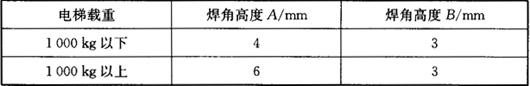 释义 | 导轨支架的安装 导轨支架是固定导轨的最终支架,安装工艺如下: (一)导轨支架长度的确定 由于建筑方面的原因,井道壁不可能达到绝对的垂直,导致各档导轨支架的长度都不相同,所以要在现场根据各档实际尺寸来截取支架。 (1)为便于支架端部的焊接作业,应使支架端部与埋件或井道壁留有15mm的间隙,故对重导轨支架长度为H1+15,见图4.1-12。 图4.1-12 对重导轨支架长度 (2)同样,预留15mm间隙,再加上3mm的垫片间隙,故轿厢导轨支架长度为H2-18,见图4.1-13。 图4.1-13 轨厢导轨支架长度 (二)导轨支架的定位 (1)导轨支架与导轨底的接触面应平行于其对应的样线(d1、d2)所确定的平面,其平行误差应在0.5mm之内。在图4.1-12中,a1、a2、a3、a4的数值相差在0.5mm以内。 (2)导轨支架与导轨底的接触面与对应样线(d1、d2)的距离应为1~3mm(以便校轨时插入垫片),如图4.1-12所示。 (3)导轨支架上用来固定导轨的长圆孔(对重支架)或圆孔(轿厢支架)的中心线应与对应的样线(d1、d2)重合,其偏差在1mm以内,如图4.1-14所示。 图4.1-14 导轨支架上固定孔位置 (三)导轨支架安装工艺要求 (1)导轨支架水平度误差应小于1.5%H,其中,H为支架的长度,工艺如图4.1-15所示,可用600mm水平尺测量。 图4.1-15 导轨支架水平误差 (2)导轨支架垂直度误差应满足误差小于0.5mm,即如图4.1-16所示,a1-a2应该小于0.5mm。可以使用钢直角尺测量。 图4.1-16 导轨支架垂直误差 (3)导轨支架焊接要求:支架搭入码托的深度应大于等于码托的2/3,如图4.1-17所示D的尺寸。支架和码托搭接处焊接的焊角高度见表4.1-3,焊缝必须是连续的,并应全焊。 表4.1-3 焊角高度要求 图4.1-17 支架搭入托码的深度 (四)注意事项 (1)焊缝必须连续,焊角高度必须小于表4.1-3所规定的要求。 (2)导轨支架靠近井道壁侧不需要焊接。 (3)导轨支架水平度误差X>1.5%H。 (4)导轨支架和码托的搭接长度D<2/3L。 |