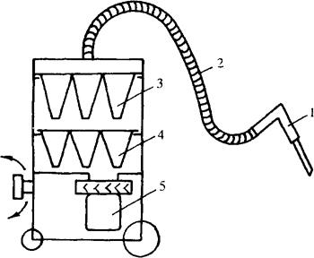 1-吸烟嘴 2-软管 3,4-滤袋 5-风机