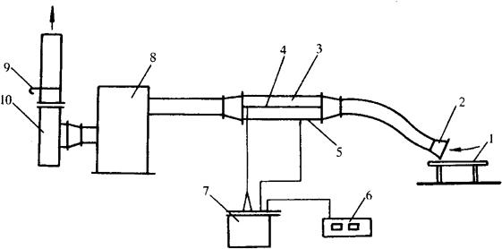 1-焊接工作台 2-罩口 3-静电凝聚器 4-电晕极 5-极板 6-控制器 7-高压发生器 8-净化器 9-风量调节阀 10-风机