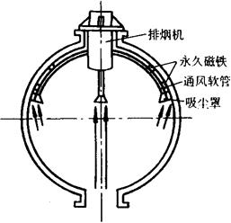 1-高速电机 2-布袋除尘器 3-风机 4-砂轮片 5-观察孔 6-密封罩