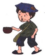 He begged along the street.他沿街乞讨。