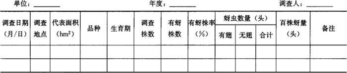 释义 | 小麦蚜虫测报调查方法 我国为害麦类的蚜虫,主要有麦长管蚜[Sitobion avenae(Fabricius)]、麦二叉蚜[Schizaphis grarninum(Rondani)]、禾缢管蚜[Phopalosiphum padi(Linnaeus)]、麦无网长管蚜[Metopoliphium dirhodum(Walker)]等4种,均属同翅目,蚜科。其中,麦长管蚜为大多数麦区的优势种,在全国麦区均有发生;麦二叉蚜主要分布在北方麦区,特别是华北、西北等地发生严重;禾缢管蚜为多雨潮湿麦区的优势种,分布在西南、华东、华北、东北等麦区;麦无网长管蚜主要分布在北京、河北、河南、宁夏、云南和西藏等地。 麦蚜的寄主种类较多,除为害麦类作物外,也为害稻、高粱、粟等其他禾本科作物及禾本科、莎草科等杂草。 1 主要影响因子 麦蚜发生消长主要受温度、湿度、天敌及小麦生育期等多种因素的影响。 1.1 气象因素 1.1.1 温、湿度 麦蚜种类不同,对温、湿度要求各异。麦长管蚜不耐高温和低温,喜湿,适宜温度12~20℃,适宜相对湿度50%~80%;麦二叉蚜抗低温,喜干燥,适宜温度15~22℃,适宜相对湿度35%~67%;禾缢管蚜不耐低温和干旱,喜高湿,适宜温度30℃。麦蚜通常在冬暖、春早的条件下有猖獗发生可能;春季干旱麦二叉蚜发生重;春季雨水多,对麦长管蚜发生有利。 1.1.2 风雨 降雨除直接影响大气湿度而间接影响蚜量消长外,暴风雨还对麦蚜有直接杀伤作用,如损伤蚜虫口器,淹溺及泥土粘连,致使蚜虫死亡。暴风雨的杀伤作用强度因蚜虫种类和虫期不同而异。麦长管蚜因多分布在植株上部和叶片正面,且易受惊动,故受风雨影响较突出;禾缢管蚜生活习性正相反,因而受影响较小。低龄若蚜口针嫩弱,且逃逸能力较成虫差,故受风雨影响大;有翅成蚜易被泥水粘连,而易受雨水杀伤。 1.2 麦蚜种群动态与寄主营养条件 麦蚜发生消长与小麦生育期即寄主营养条件关系密切。苗期因营养和温度不适,蚜量较低,为害亦轻;春季小麦返青后,随着温度的升高和寄主营养条件的改善,麦蚜种群密度逐渐增加;小麦抽穗扬花后,田间蚜量急增,至灌浆期麦蚜各种群达到最高峰,也为麦蚜为害最严重时期;小麦乳熟期开始,寄主营养条件恶化,麦蚜密度也随之下降。 小麦长势好的麦田蚜虫发生早且重。 1.3 栽培条件 麦蚜种群数量变动与小麦播期、浇水等栽培条件有密切关系。秋季早播麦田蚜量多于晚播麦田。春季,则晚播麦田蚜量多于早播麦田;水浇田蚜量多于旱田。 1.4 天敌 捕食性天敌与麦蚜的发生、消长在时间和空间方面具有明显的跟随效应,寄生性天敌存在一定的时滞现象。据研究,当麦田天敌单位与麦蚜密度比达到1∶300~370时,两者基本处于平衡状态,天敌与害虫之间的相互作用比较稳定,种群波动较小;当天敌与麦蚜的比例大于平衡状态的益害比,害虫的种群数量会逐渐下降;反之,种群数量会上升。 2 调查项目和方法 2.1 系统调查 2.1.1 调查时间 小麦返青拔节期至乳熟期止,开始每5天调查1次,当日增蚜量超过300头时,每3天查1次。 2.1.2 调查田块 选择当地肥水条件好、生长均匀一致的早熟品种麦田2~3块作为系统观测田,每块田面积不少于2×667m2。 2.1.3 调查方法 采用单对角线5点取样,每点固定50株,当百株蚜量超过500头时,每点可减少至20株。调查有蚜株数、蚜虫种类及其数量。记录结果并汇入小麦蚜虫系统调查表4-130。 表4-130 小麦蚜虫系统调查表 注:地块类型是指早、中、晚播田或高肥水田等。 2.2 大田普查 2.2.1 普查时间 在小麦秋苗期、拔节期、孕穗期、抽穗扬花期、灌浆期进行5次普查。同一地区每年调查时间应大致相同。 2.2.2 普查田块 根据当地栽培情况,选择有代表性的麦田10块以上。 2.2.3 普查方法 每块田单对角线5点取样,秋苗期和拔节期每点调查50株,孕穗期、抽穗扬花期和灌浆期每点调查20株,调查有蚜株数和有翅、无翅蚜量,记录结果并汇入小麦蚜虫大田普查表4-131。 表4-131 小麦蚜虫大田普查表 2.3 天敌调查 2.3.1 调查时间 在每次系统调查小麦蚜虫的同时,进行其天敌种类和数量调查。 2.3.2 调查方法 寄生性天敌以僵蚜表示。僵蚜取样点和取样方法与蚜虫相同,每次查完后抹掉;瓢虫类、食蚜蝇幼虫和蜘蛛类随机取5点,每点查0.5m2,用目测、拍打方法调查。将调查天敌的数量分别折算成百株天敌单位,记录结果并汇入小麦蚜虫天敌调查表4-132。 表4-132 小麦蚜虫天敌调查表 3 预测预报方法 3.1 综合分析预报 小麦蚜虫主要采用综合分析预测方法。麦蚜发生消长主要受温度、湿度、天敌及小麦生育期等多种因素的影响。通常在冬暖、春早的条件下,麦蚜有猖獗发生可能。春季干旱麦二叉蚜发生重;春季雨水多,对麦长管蚜发生有利。 3.2 防治适期预报 小麦抽穗后,温、湿度适宜时,麦蚜繁殖极为迅速,乳熟期造成损失最大。当百株蚜量超过300头,气象预报短期内无中到大雨,应立即发出防治警报。3天后调查,如蚜量明显上升,百株蚜量超过500头,天敌单位与蚜虫比例小于1∶150,应立即发生防治警报。 4 测报调查参考资料 4.1 测报资料收集、汇报和汇总 收集小麦主要品种及其栽培面积,小麦播种期和各期播种的小麦面积。同时,收集当地气象台(站)主要气象要素的预测值和实测值。 全国区域性测报站每年定时填写小麦蚜虫模式报表报上级测报部门。 每年对小麦蚜虫发生期和发生量进行统计,汇总结果。并记载小麦种植和蚜虫发生及防治情况,总结发生特点,进行原因分析。 4.2 发生程度分级指标 小麦