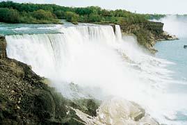 释义 | 尼亚加拉瀑布(Niagara Falls) 在北美洲尼亚加拉河上。 该河从伊利湖流注安大略湖(前者湖面高出后者99米),于石灰岩-白云岩构成的尼亚加拉陡崖处陡落,形成瀑布。河中的戈特岛(Goat)分瀑布为两段:左属加拿大,呈半环状,名马蹄瀑布,宽793米,落差49.4米;右属美国,称亚美利加瀑布,宽305米,落差50.9米。加、美在瀑布附近河段上分别建大型水电站。 美洲名胜之一,旅游业甚盛。 瀑布两岸有分属加、美的同名姊妹城——尼亚加拉瀑布城,为旅游胜地。 尼亚加拉瀑布 |