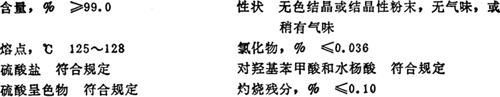 释义 | 尼泊金甲酯 别名 对羟基苯甲酸甲酯、Nipagin 结构式 性能 无色结晶或白色结晶性粉末。无气味或微有刺激性气味。能溶于醇、醚和丙酮,微溶于苯及四氯化碳,难溶于水。本品饱和水溶液呈微酸性。 质量规格(参考) 用途 用于有机合成、防腐剂。 包装贮运 内衬聚乙烯袋封口的铁盒包装,净重5kg。贮于阴凉干燥处。 国内生产厂 江苏昆山日用化工厂、北京化工厂、北京大兴西中化工厂、天津化学试剂一厂、上海试剂一厂。 国外质量规格参考(JSCI-Ⅱ) |