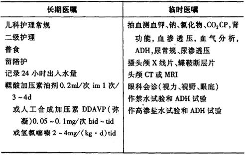 说明:1.尿崩症确诊后,临床更重要的是进一步寻找病因,对因治疗。