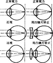 释义 | 屈光不正 大部分老年人患有不同程度的屈光不正,通过验光确定屈光度后可利用镜片矫正。配戴眼镜可使老年人视力明显提高和改善(图10、图11)。 图10 近视、远视及其矫正 图11 老视及老视的矫正 一、近视 1.病因 (1)高度近视:眼轴的延长(即角膜中央到黄斑的距离增加),可导致不同程度的玻璃体、视网膜退行性改变,表现出高度近视。 (2)弯曲性近视:指眼轴正常而角膜或晶体前后面弯曲度增大,如圆锥角膜、球形晶体等造成的近视。 (3)屈光指数性近视:指晶体屈光指数增加,如早期老年性白内障和糖尿病引起的近视。 2.临床表现 (1)视力:远视力差、近视力正常。高度近视眼(如有并发症)近视力也不正常。 (2)眼球改变:可有突出,伴深前房、瞳孔大、巩膜硬度低。 (3)眼底改变:高度近视者玻璃体液化、混浊,视乳头颞侧弧、豹纹状眼底,脉络膜萎缩,周边视网膜带状变性,容易并发后巩膜葡萄肿、黄斑部萎缩、出血、视网膜裂孔、脱离,以及并发性白内障等。 3.治疗 应及时验光配镜。高度近视应避免重体力劳动和剧烈运动,以免眼外伤造成视网膜脱离。应定期复查,预防并发症。 二、远视 1.病因 (1)轴性远视:由于疾患或眼球后肿物的压迫使眼轴缩短。 (2)屈光性远视:指眼轴正常,而眼的屈光力减弱所造成的近视。即由于角膜、晶体表面弯曲度较小,角膜、房水、晶体屈光指数偏低或玻璃体屈光指数过高。此外,晶体的移位、缺如,眼球挫钝伤,视网膜水肿,黄斑区水肿及糖尿病接受胰岛素治疗时血糖浓度降低时也可出现一过性远视。 2.临床表现 (1)视力:远视眼的裸眼视力取决于屈光度的高、低和眼调节力的强、弱。 (2)视疲劳:长时间近距离工作时易产生眼疲劳,其症状是视朦,眉弓、眼部胀痛,甚至恶心、呕吐。其特点是患者休息片刻或戴用凸透镜后,症状可减轻或消失。 (3)易发青光眼:因前房浅、角膜小、眼球小等解剖学特点,极易发生闭角型青光眼。 3.治疗 可用凸透镜矫正。老年性远视不论看远看近都需配镜矫正,可配远用与近用眼镜,而且以双焦点眼镜为佳。从事室外工作的老年人,远视度数可稍低一些。 三、散光 1.病因 因角膜或晶体表面弯曲度不相同及屈光指数异常所致。常见散光的原因有角膜弯曲度异常(如锥形角膜)、角膜周边退行性变、角膜炎、角膜溃疡以及眼科手术(如老年性白内障手术、角膜移植手术、眼肌手术)、眼外伤、眼内肿瘤等。 2.临床表现 视物模糊、头疼、眼痛等不适。 3.治疗 配戴眼镜以矫正视力,改善眼部症状。 四、老视(老花眼) 1.病因 随着老年人年龄的不断增长,晶体逐渐硬化,失去原有的可塑性,睫状肌调节能力减弱,眼的近点逐渐远移,近距离阅读工作困难。 2.临床表现 (1)近点移远:工作和阅读距离移向远处,大于30厘米才能看清,当光线不足时更为明显。 (2)视疲劳:不能长时间视近物,易发生头疼、头晕眼胀等症状。 3.治疗 可戴用凸透镜来补偿眼的调节力,将近点移到正常阅读距离。镜片的屈光度取决于年龄和原来屈光状态。对精细近距离工作者,要求近点距离较近些,则屈光度相对大一些。随着年龄增加,以后3~5年需调换一次眼镜片。 配戴老花镜的参考度数如下: 45岁可配戴+1.00D(100度) 48岁可配戴+1.50D(150度) 50岁可配戴+2.00D(200度) 55岁可配戴+2.50D(250度) 60岁可配戴+3.00D(300度) 65岁可配戴+3.25D(325度) 70岁可配戴+3.50D(350度) 对于曾是近视眼的老年人,由于近视的度数可以中和一个部分老视的度数,所以,配戴老花镜的时间可以相对晚一些,而曾远视的老年人,配戴老花镜的时间则相对早一些。 五、无晶体眼 1.病因 晶体摘除术后或晶体脱位等,致使平行光线进入眼内,没有经过晶体的折射,不能在视网膜上聚焦成像,焦点落于视网膜的后方,呈高度远视的屈光状态。 2.临床表现 (1)视力明显降低,一般裸眼视力≤0.1。 (2)调节作用完全丧失,必须戴近用镜才能进行近距离阅读和作业。 (3)检查可见虹膜震颤,前房变深。 3.治疗 (1)配戴眼镜:一般需用+12D球镜片矫正,因患眼失去调节功能,在近用时还需在远用镜片的基础上增加+4D,因此,无晶体眼需配远用、近用两副眼镜。 (2)人工晶体植入:由于现代眼科手术的进展,白内障手术人工晶体植入率达95%以上。由于无晶体眼配镜具有双眼屈光参差大、双眼影像差大、周边视野小、模糊不清,眼镜片重,配戴不便等缺点,所以建议老年白内障术后没植入人工晶体的患者,在眼部条件允许的情况下做二期人工晶体植入手术,术后同样可取得良好的视力。 |