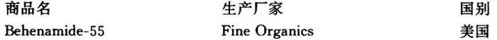 释义 | 山榆酸酰胺 【结构式】: 【释文】: 性质 粉状、片状或粒状物。酰胺含量99%。游离酸含量0.2%。熔点103~105℃。 用途 本品可作为塑料用抗粘连剂和爽滑剂。无毒,可用于与食品接触的制品。 国外生产厂 |