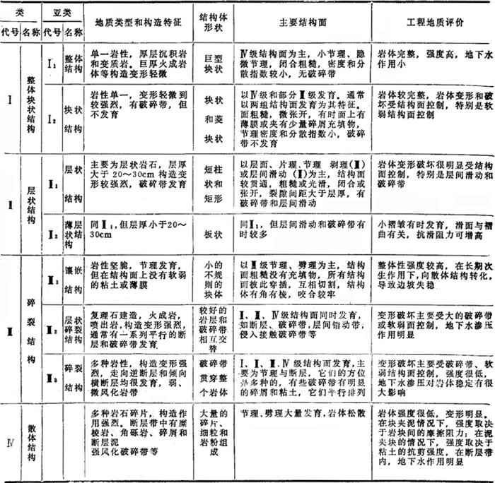 释义 | 岩盐围岩的力学性质 研究岩盐围岩岩石的物理力学性质,在采用旱采时,可作为凿岩、爆破和地压管理等作业的设计依据;水采时,可据以考虑如何防止顶板垮塌,如何确定保安矿柱,如何选择开采深度、井位、井距和合理开采工艺(如压裂法)等。 (一)围岩的物理力学性质 围岩的物理力学性质,包括强度、弹性、塑性、脆性、硬度、韧性、容重和碎胀性。 1.强度 岩石的完整性开始破坏时的极限(临界)应力值。又分为抗拉、抗压、抗剪等强度。一般岩石的抗压强度界于20~30MPa至200~300MPa之间;抗拉强度只有抗压强度的 2.弹性、塑性和脆性 弹性是岩石除去外力后,恢复其原来形状和体积的性能。在岩石破碎前具有明显残余变形的岩石称为塑性岩石,几乎没有残余变形的岩石叫脆性岩石。岩石的变形性质与受力条件有一定关系,在三向受压或高温下,塑性会显着增加,常态下具有脆性的岩石,此时也可能变成塑性体。在冲击载荷作用下,岩石的脆性又会显着增加。 3.硬度和韧性 硬度是岩石抵抗工具刻画侵入的能力。硬度大的岩石,钻、凿都比较困难。韧度,则是岩石抵抗冲击工具侵入的能力,也称动力硬度。一般沉积岩的韧度为0.08~0.4kg·m/cm2。 4.容重 单位体积内原岩的重量,一般岩石的容重在2.3~3之间。 5.碎胀性(松散性) 破碎后的岩石比原体积增大的性质叫碎胀性或松散性。 通常岩石愈坚硬,其松散系数K愈大。一般岩石的K值为1.2~1.8。 6.稳固性 岩石在一定的暴露面积范围内,虽无支撑,仍能在一定时间内保持稳定而不崩落的性能。这一性质与井下硐室水溶和钻井水溶采矿有密切关系。就坑道开采来说,岩石按稳固性的不同可分为4类: (1)极不稳固的岩石 允许暴露面积50~100m2。 (2)不稳固的岩石 允许暴露面积100~400m2。 (3)稳固的岩石 允许暴露面积400~800m2。 (4)很稳固的岩石 允许暴露面积大于800m2。 7.坚固性系数 上述各种性质只反映岩石某一方面的性能。为了综合表示岩石受各种外力作用时破坏的难易程度,实际工作中采用岩石的坚固性系数(f)。岩石的坚固性系数愈大,要破碎这种岩石愈难;坚固性系数愈小,要破碎这种岩石愈容易。常见岩石的坚固性系数介于1~20之间,见表3-3-9。 表3-3-9 岩石坚固性分类表 (二)岩体结构特征 1.岩体的稳定性 在工程开挖(或岩盐开采溶腔的形成)与运营期间岩体不发生显着变形与破坏的特征。岩体稳定或失稳的概念是相对的,不同岩体的结构特征要求的标准不同,研究岩体发生失稳条件及变形破坏的规律,才能制定合理而有效的防治措施。例如,在旱采时,对巷道工程如何预防垮塌及地面沉陷,钻井水溶开采时,对确定岩盐顶板的稳定性和预防顶板的垮塌等,都有现实意义。 (1)岩体、结构面、结构体 岩体:通常泛指工程所辖范围的地质体。岩体由结构面和结构体两个单元构成。 结构面:指不同成因、不同规模、不同性质的地质界面,即岩体中的不连续面和切割面,如层面和断裂面等。 结构体:由不同产状的结构面相互切割而成的、大小不一、形态各异、岩石种类不同的块体。它们的特性决定岩体在受力状态下的不均一性和不连续性。由于结构面的性质和空间组合以及结构体的性质和形态不同,造成岩体工程地质的性质差异。 (2)结构面的类型、自然特性和分级 受力岩体中的结构面,在其变形、破坏过程中所起的作用,取决于结构面的成因和自然特性,这种特性直接影响岩体的物理力学性质。按地质成因来说,结构面可分为原生结构面、构造结构面和次生结构面,其特征如表3-3-10。 表3-3-10 岩体结构面类型及其特征 由于结构面的规模、性质不同,对工程稳定性的影响也不同,现将结构面分级列于表3-3-11。 表3-3-11 结构面的分级 (3)岩体结构分类及其特征 岩体的结构类型对于岩体的物理力学特征及失稳程度起到控制作用。 岩体结构类型的划分目的是评价各类岩体的稳定性,反映岩体不连续性和不均一性的基本特征及其失稳破坏形式。划分的原则是充分考虑岩石组合特征、构造变形程度以及结构面和结构体相互排列、组合特征。各类岩体结构的基本图式见图3-3-7。岩体结构类型及其特征见表3-3-12。 表3-3-12 岩体结构类型及其特征 图3-3-7 各类岩体结构图式 (三)评价岩体稳定性应考虑的因素 1.岩体的结构特征和类型不同,其变形破坏条件、方式和过程也不同。结构面形状及数量多寡,在整个变形过程中起着主导作用;结构面的闭合与张开,充填物有无及厚薄、结构面产状及作用力的关系,则起着决定作用。例如,岩体在塑性变形阶段,基本受软弱结构面的物理力学性质所制约;进入硬化破裂阶段时,岩体则表现易脆性破裂等。应进行综合研究评价。 2.岩体受力后,需具有三个基本条件,即:滑移面、切割面及临空面,才有变形破坏的可能,必须结合工程施工情况具体分析。 3.岩体变形破坏表现的主要失稳方式有剪切滑移、脆性破裂、塑性变形及弯曲断裂等4种。在工程中反映为崩塌掉块、坍塌滑移、片帮冒落、鼓起挤出等特点。 4.岩体变形破坏主要受结构面、特别是软弱岩化结构面的控制。它不仅控制着岩体变形破坏的部位,而且控制着岩体变形破坏的运动轨迹。 5.控制岩体变形破坏的滑动面,可以是一组结构面,也可是二组、多组结构面。因而实际工作中应考虑各种结构面的滑移方向。 6.岩体变形破坏是有征兆的,应重视工程地质预报及动