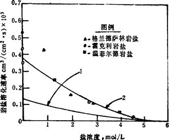 释义 | 岩盐溶解机理 (一)注水速度对岩盐溶解速度的影响 淡水用泵注入岩盐溶腔,淡水流速直接影响岩盐溶解速度及溶腔形状,这是因为溶腔中存在着不同含盐量的体积液。只要属于层流的流态,却又与溶腔内的流速无直接关系。若溶腔内已充满淡水,而注水速度很慢,返出卤水带走的盐量小于溶腔中溶解的盐量,则溶腔中水的盐度将相应增高,溶盐速度相应减慢,直到返出卤水的浓度等于溶腔内的溶盐速度为止;反之,若返出卤水带走的盐量大于溶腔中溶解的盐量,溶腔中水的盐度将相应降低,溶盐速度相应加快,直至达到新的平衡。 (二)岩盐溶解时的浓度、速度分布特征 岩盐溶解时,与岩盐表面接触的水密度增大,并沿岩盐表面向下流动。此边界层的流速是该层卤水密度与主体水密度之差以及企图阻止其流动的粘性剪力的函数,其浓度、速度分布曲线见图3-3-1、3—3-2。 图3-3-1 浓度分布曲线 图3-3-2 速度分布曲线 (三)岩盐的质量传递 在同一温度下,岩盐在水中的质量传递速率随氯化钠的扩散常数和运动粘度的增加而增大,见图3-3-3、3—3-4。 图3-3-3 氯化钠水溶液在18℃时的扩散常数D 图3-3-4 氯化钠水溶液在20℃时的运动粘度v (四)岩盐表面层扩散传递特征 当岩盐从一固体表面进入一流体边界层并被传递至溶液中时,必须通过与岩盐接触的静止水膜进行扩散。扩散的质量传递速率应等于扩散系数与浓度梯度的乘积;扩散传递的方向与盐度减少的方向一致。岩盐一经进入边界层,便在分子扩散及对流的共同作用下进行传递。对流传递又通过改变岩面的浓度梯度,影响其溶解速率。 (五)自然对流时的岩盐溶解速率 可通过理论计算或实际测定来确定。初始光滑表面的实测值和计算值相近似,见图3—3-5所示美国几个矿床的实例;但由于岩盐表面不平整,其最终平均速率的计算值却比测定值小得多,见图3-3-6、表3-3-1。 图3-3-5 岩盐的对流溶解-初始速率 图3-3-6 岩盐的对流溶解-最终速率 1-光滑表面的理论溶化速率曲线 2-调整速率曲线 表3-3-1 对流溶解数据 注:①最终平均速率实验值与其计算值之比。 (六)强制对流与岩盐的溶解路径 淡水一进入盐水区,因重力分异作用立即向溶腔顶部上升,在静止的盐水中形成高速的运动,从而波及盐水中所有质点。边界层盐水的运动本来是沿岩盐层表面进行的,但注入淡水造成的运动会干扰边界层速度,使边界层中某些流动质点改变运动路径,沿着与原有流动方向成90度的方向继续运动。 溶腔壁面的粗糙或凹陷使边界层的盐水沿着许多弯曲路径运动,惯性力又可使它偏向新的路径。但盐水具有分层的特点,故其运动主流方向仍继续沿着分层方向(水平方向)进行。当盐水浓度分布曲线已达到稳定状态时,出口盐水浓度也保持恒定。 |