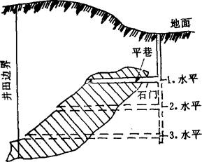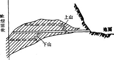 释义 | 岩盐矿井采矿(房柱法) 在20世纪50年代岩盐钻井水溶法兴起之前,房柱法是应用最广的开采地下岩盐的方法(旱采)。即使在今天,对于埋藏适中(数百米)、含NaCl品位高(95%以上)、采出矿石可直接利用的地下岩盐矿床,房柱法仍不失为重要的开采方法。 房柱法的优点是采准工作量小,采矿强度大,容易实现机械化,劳动生产率高,矿体内坑道不需人工支护,采矿成本低,矿石贫化率小。缺点是保留矿柱的矿量损失大(达50%或以上),开采深度有限(千米以内)。 我国于1939年首先在云南一平浪盐矿采用房柱法,20世纪50年代在云南主要盐矿推广,70年代起,因各矿分别采用开下硐室水溶法和钻井水溶法而停止。 (一)岩盐矿山开拓 从地表向地下开拓一系列通达矿体的井、巷,形成提升、运输、通风、排水和动力供应等系统,以便开采地下岩盐矿床。 1.开拓方式 我国常见的岩盐矿山开拓方式有竖井开拓、斜井开拓、平硐开拓和联合开拓。 (1)竖井开拓 对于各种地质赋存条件的岩盐矿床适应性较强,对于开采深度和生产能力较大的矿山尤为适用。 在开拓近水平或缓倾斜矿床时,竖井可以直接通达矿层,称为“脉内开拓”。对于倾斜或起伏较大的矿体,竖井一般开凿在不受采动影响的底部岩层内,并从井底开凿石门,与开采水平连接,称为“脉外开拓”见图3-3-192。 图3-3-192 倾斜盐层竖井脉外开拓示意图 竖井井筒的断面形状,分为圆形、矩形及椭圆形三种。常用的是圆形井筒,内径约4.5~5.5m;其次为矩形井筒,断面尺寸一般为2×4~2×6m,大都用于开采深度不大的小型矿井。 采用竖井的优点是:井筒井壁受力均匀,稳定性较好,井筒通过含水层或弱地层的施工困难较少,井筒提升能力较大,服务年限较长,通风阻力小。缺点是井筒施工技术复杂,建井时间长,投资较大。 我国云南、湖北一带岩盐矿山曾采用竖井开拓。 (2)斜井开拓 适用于矿体埋藏较浅、围岩稳定、水文地质简单、无流沙层的岩盐矿床。对于倾斜矿床,井筒往往沿盐层底板开凿(脉外开拓)。井筒断面尺寸视井筒用途、提升方式和提升能力而定。井筒倾角,用矿车提升时,不宜超过30°;用箕斗提升时可在30°以上;用带式输送机提升时,一般不超过17°。 与竖井比较,斜井施工技术较简易,投资少,建井时间短。缺点是:井筒通过含水或泥沙层时施工困难;井筒沿矿体布置时(图3-3-193),维护困难,需保留护井砂柱,因而服务年限较短,一般适用于生产规模不大的中、小型矿井。 图3-3-193 岩盐矿体斜井穿脉开拓示意图 我国云南省的小型岩盐矿山大都采用斜井开拓。 (3)平硐开拓 从地面开掘水平巷道直达矿体的开拓方式(图3-3-194),适用于平硐标高以上赋存有足够矿量的山地或丘陵地区,我国只有云南某盐矿采用。 图3-3-194 岩盐矿体平硐开拓示意图 平硐主要担负运输、进风、排水、铺设管线、电缆等任务。在上部边界可以开凿回风井,以构成矿井通风系统。 平硐开拓较之竖井和斜井开拓经济,便于维护,地面设施简单,排水和运输费用低,建井进度快。 (4)联合开拓 竖井、斜井、平硐是岩盐矿山的主要开拓方式。有时根据矿山地质和地形条件,采用其中两种或三种方式,共同开拓一个矿山,称为“联合开拓” 此外,为了开拓深部矿体或矿体赋存条件变化时,可以采用盲井(不直接通达地面的竖井或斜井)与竖井或斜井、平硐联合的开拓方式。 2.井硐数目和位置选择 根据矿井安全生产规程:“每一个矿井至少要有两个能上、下人通到地面的安全出口”,因而一个岩盐矿山的开拓井硐应不少于两个;其中一个为专供运输的主井,另一个为担负辅助运输和通风任务的副井。 井硐位置的选择: (1)井筒及地面建筑和构筑物应布置在地表岩层移动带之外,并在井下留有保安砂柱。 (2)井筒地表不受滚石、滑坡、洪水、雪崩等威胁;地表地形的土石方工作量不大,并使井口布置和运输系统合理。运输费用最低。 (3)应考虑表土、岩层特征,涌水量大小,有无溶硐、流砂层及地质构造条件。 (二)矿井生产能力与服务年限 矿井生产能力是指矿井每年采出到地面的矿石数量,通常以万吨/年表示。矿井服务年限是矿井能够维护使用的期限,通常以年计。 在进行矿山设计时,为了充分发挥井巷工程设施和建井投资的使用,要求矿井的服务年限最大限度地与矿井生产能力相适应。一般说来,生产能力大的矿井,服务年限较长;反之,则较短。表3-3-105是我国一般矿井设计生产能力与服务年限的划分方式。 表3-3-105 矿井设计生产能力与服务年限的划分 目前,美国最大的岩盐矿井生产能力为300万吨/年。 (三)采区划分及开采顺序 地下岩盐矿床,一般分布面广,储藏量大,因而必须将巨大的矿床划分为若干部分,进行分区分段开采。通常由一个矿井开采的部分,称为“井田”。井田应划分成沿矿层走向长度大、沿倾向长度较短的矩形。 对于近水平或缓斜的单一盐层,范围较大的井田再划分为若干盘区,盘区内按照矿山设计,布置连续的矿房和矿柱。 对于倾斜或厚度大的矿体,则沿厚度划分为若干段(又称为“水平分层”),中段内划分盘区,布置矿房和矿柱。中段划分厚度视矿房回采高度而定。中段之间,开掘上、下山联系。设有主要运输、通风大巷的中段,称为“开采水平”。一个开采水平往往服务于两个以上的中段。 分中段开采的矿井,采取自上而下,并从井筒向井田边界推进的开采顺序。 