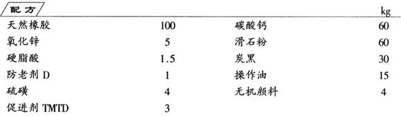 先将天然橡胶与促进剂TMTD共同进行塑炼,再加入其余全部组分混炼,薄通,得到胶料。按胶板工艺要求成型,经硫化,制成绝缘橡胶板。