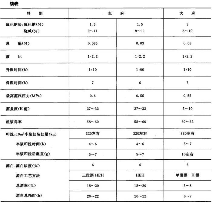 表5-10-7 麻料韧皮纤维制浆生产高档纸用