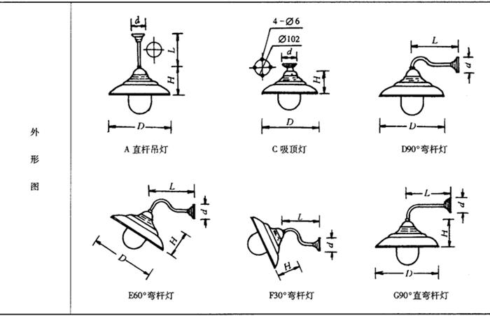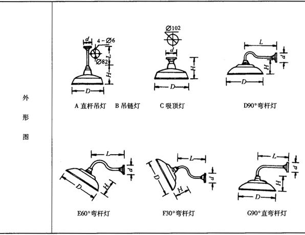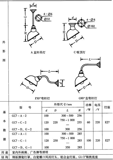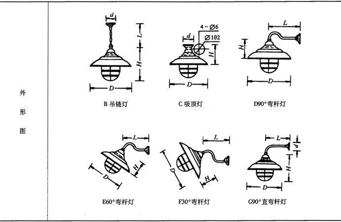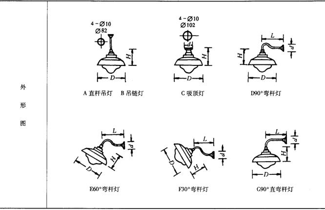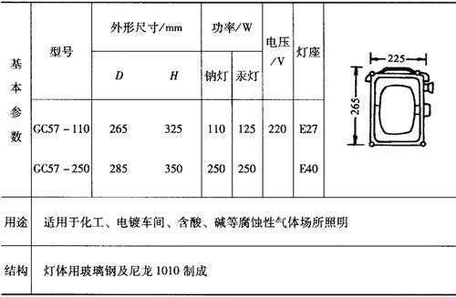 表9-57 GC22广照型防水防尘挂灯