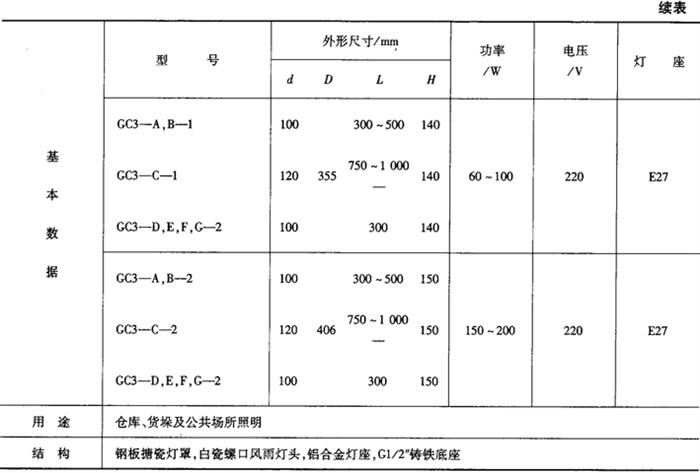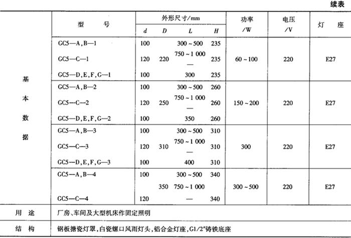 表9-47 GC3广照型工厂灯