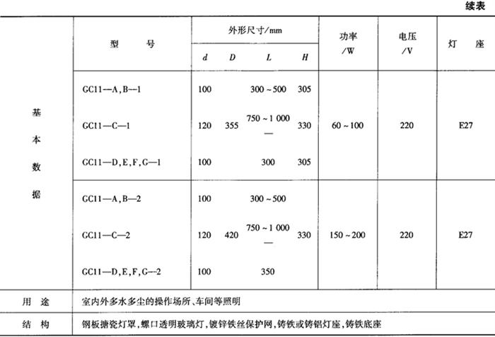 表9-50 GC9广照型防水防尘灯